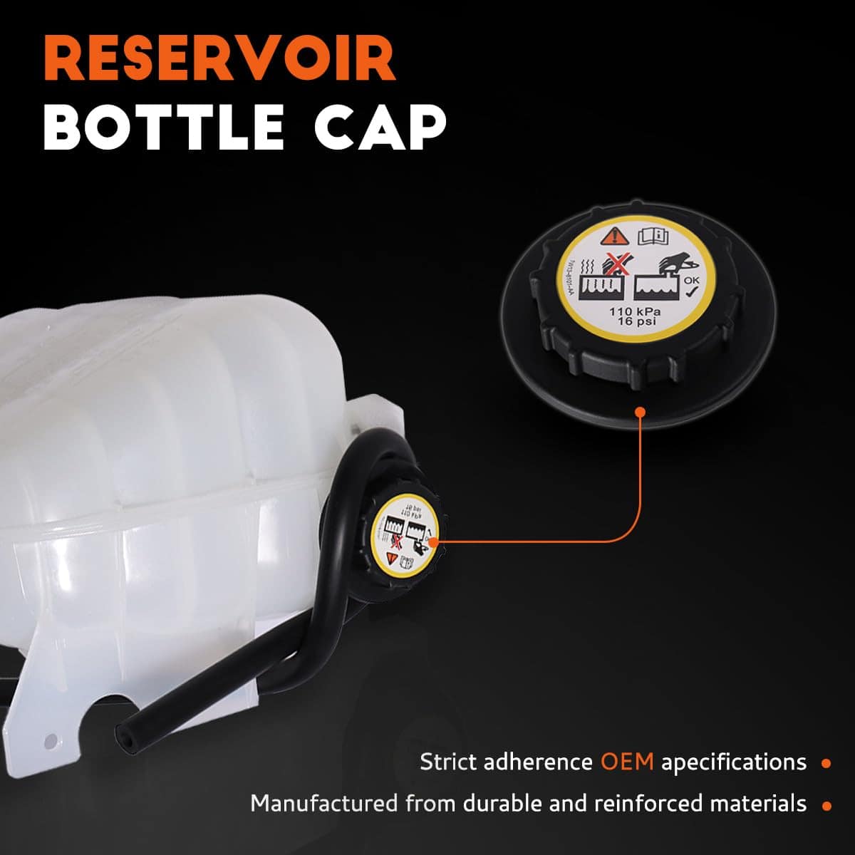 4. Reemplazo directo: Fije el tanque del refrigerante al compartimento del motor usando tornillos; Conecte mangueras a las ubicaciones apropiadas en el radiador; Llene con refrigerante; Cuando el motor alcance la temperatura de funcionamiento, apriete la manguera superior del radiador para ayudar a liberar aire.