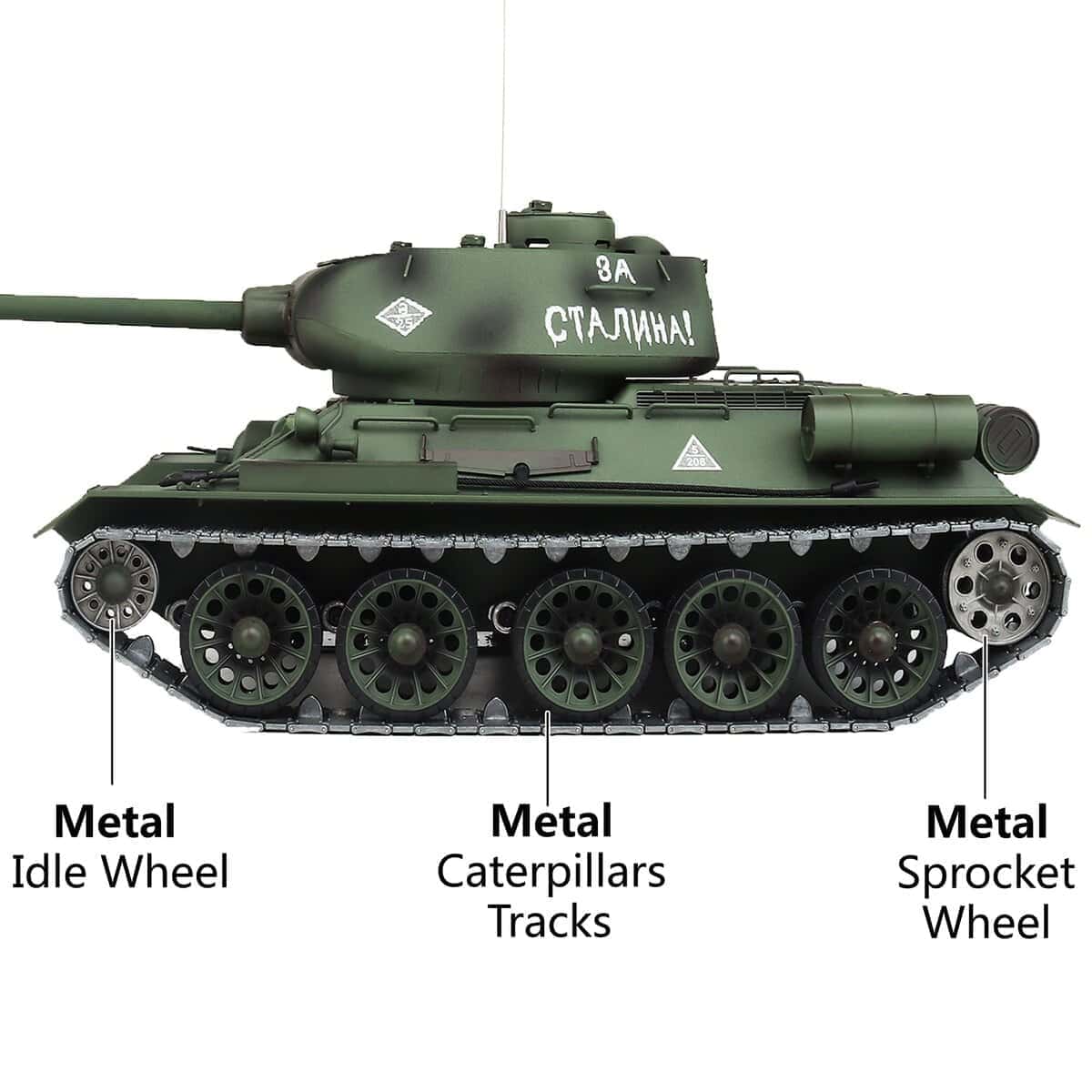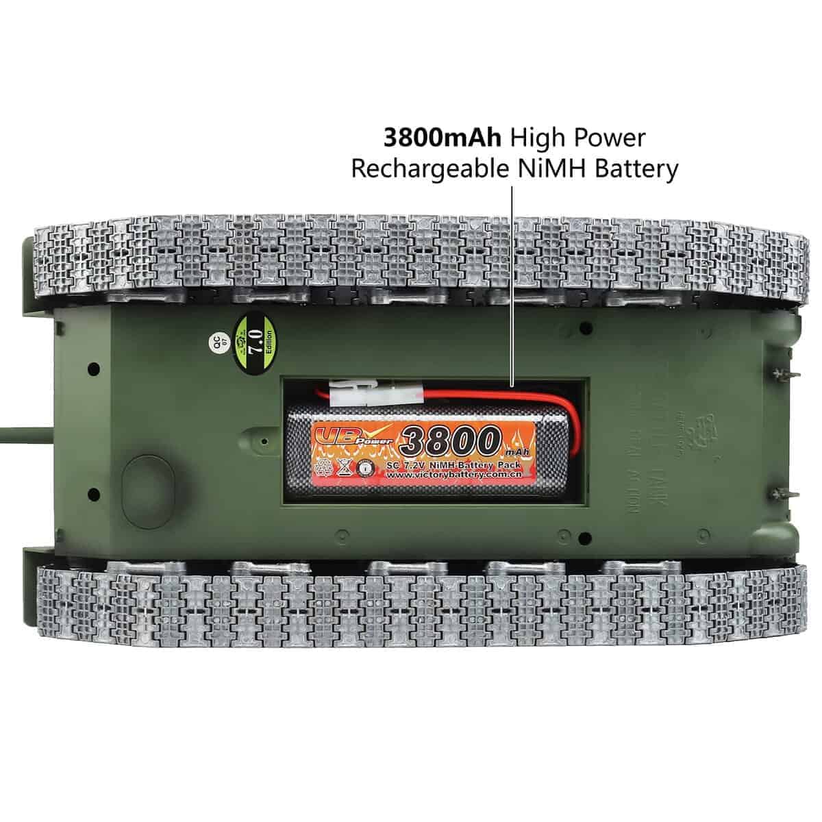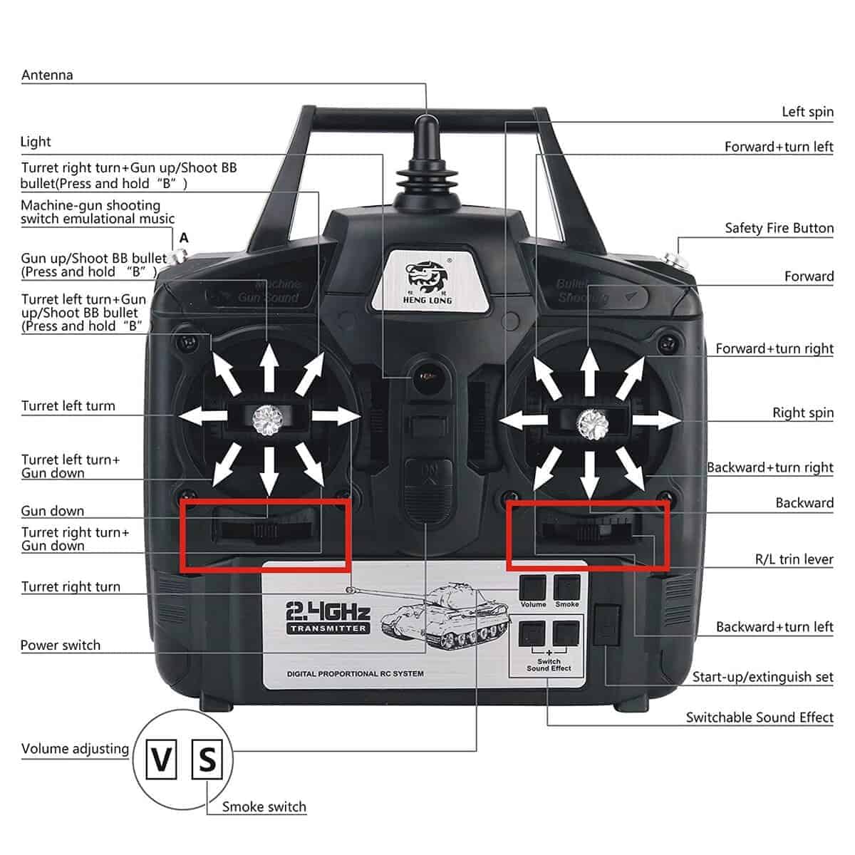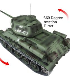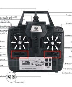 Este tanque puede moverse hacia adelante, acelerar hacia adelante y hacia atrás, girar, levantar el cañón 30 grados. La torreta puede rotar 360 grados. Ángulo de giro vertical máximo de la pistola (arriba/abajo) aproximadamente 30 grados. Inclinación máxima de escalada (cambiable en diferentes superficies de carretera) aproximadamente 35 grados. Efectos de sonido del motor, sonido de ametralladora. Proyectiles de pistola: BB estándar de 6 mm. Efectos de humo y sonido simulador. Control electrónico completo con sistema de control remoto (sistema de humo y sonido).