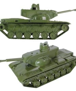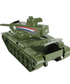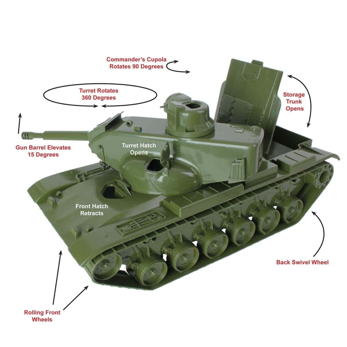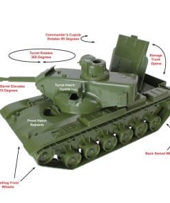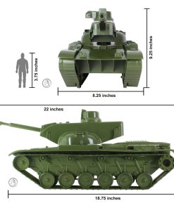 El tanque de batalla Tim Mee DOMINATOR M60A2 está listo para tu próxima épica batalla en el patio trasero. Este tanque es fabricado con orgullo en los Estados Unidos y cuenta con un cañón elevable, torreta que gira, cúpula del comandante que gira, 2 escotillas que se abren, ruedas giratorias y un compartimento de almacenamiento en la parte trasera. Es un juguete bastante grande, midiendo 18.75 pulgadas de largo (22 pulgadas incluyendo el cañón), 8.25 pulgadas de ancho, 9.25 pulgadas de alto y es aproximadamente escala 1:14. Hecho de plástico HDPE color verde oliva ligeramente rígido con muchos detalles nítidos. Modelado según el tanque M60A2 Starship Patton, LA EMPRESA DE PLÁSTICOS PROCESADOS (empresa matriz de Tim Mee) produjo este tanque por primera vez alrededor de 1990 y lo ofreció como el Dominator, Thunder Crusher Desert Command y Battle Tank. Fue diseñado como un vehículo genérico que sería compatible con una variedad de figuras de acción como la línea de productos de G.I. Joe de 3-3/4 pulgadas de los años 80. Como bono adicional, se incluye una hoja de pegatinas con reproducciones de algunas de las pegatinas patrióticas originales y nuevas gráficas de ‘estrella fugaz’ para la torreta en honor a las raíces históricas de este tanque masivo. Este es posiblemente el tanque tipo ARMY MEN más grande jamás fabricado y supera en tamaño a los Tanques Patton de Tim Mee a escala 1:48 e incluso al Tanque Walker Bulldog de Tim Mee a escala 1:24. Este es un juguete real hecho en Estados Unidos, destinado a ser rodado, derribado, recogido y jugado durante años. Empaquetado en una caja marrón simple optimizada para el envío directamente a ti. Recomendado para mayores de 5 años. Tanque TimMee Dominator M60A2 Color: Verde Oliva Tamaño: 22 pulgadas de largo (incluyendo la pistola) x 8.25 pulgadas de ancho Escala: Aproximadamente 1:14 Embalaje: Caja de envío corrugada simple