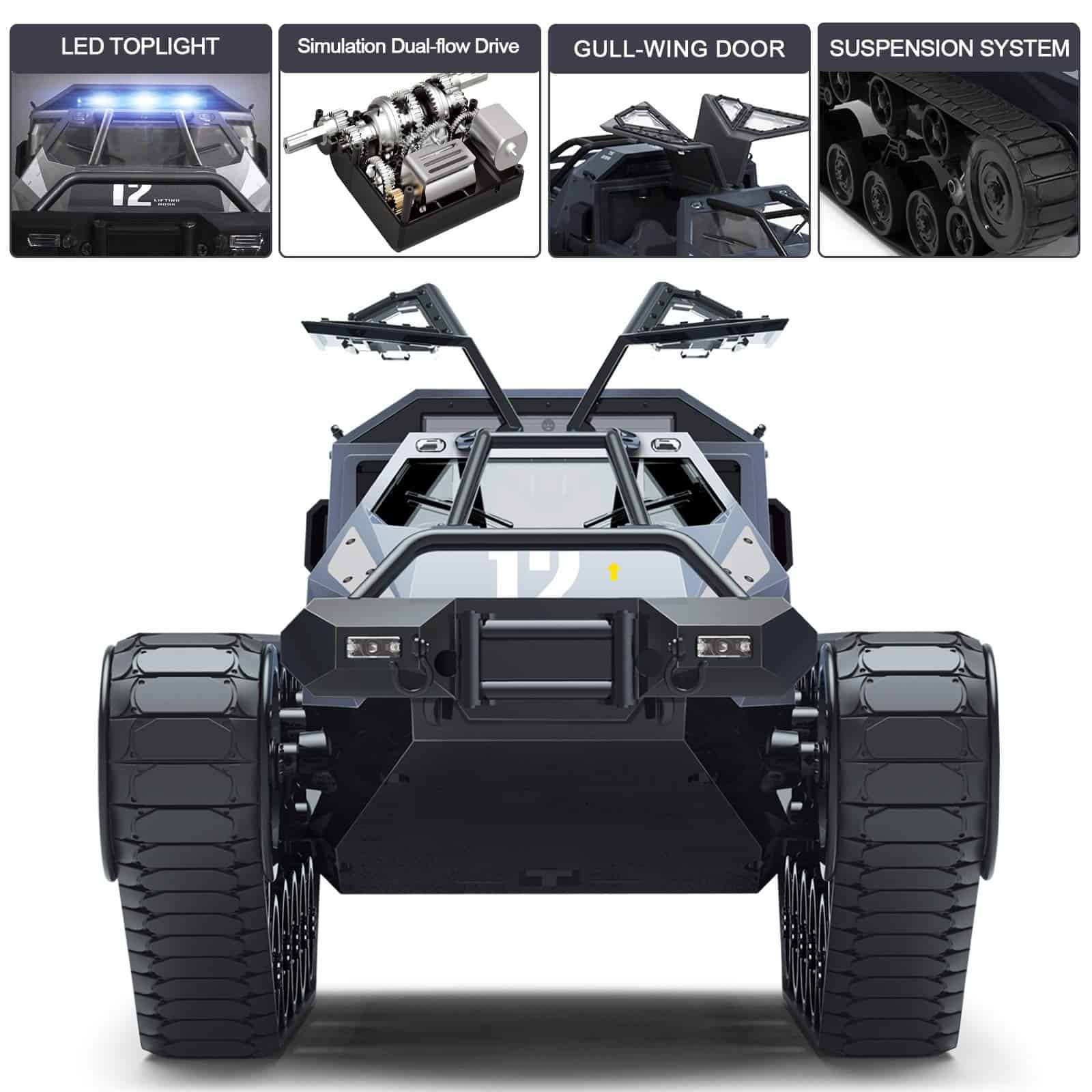 ¡Es hora de disfrutar de tu tiempo de conducción! Este tanque RC puede ser tu mejor opción para divertirte. La tracción en las 4 ruedas ofrece al conductor la tracción adecuada para competir lo más rápido posible. Con la simuación de caja de cambios de doble flujo, 360 grados de rotación, un ángulo de escalada de hasta 30 grados y una capacidad de superar obstáculos de hasta 3.93 pulgadas, puedes superar múltiples terrenos fácilmente. Alimentado por una batería de iones de litio de 1200mAh, el tiempo de juego máximo puede llegar a 20 minutos. Con control remoto de radio 2.4Ghz, puedes competir con tus amigos libremente. ¡Comienza de inmediato y disfruta de tu tiempo de carreras!