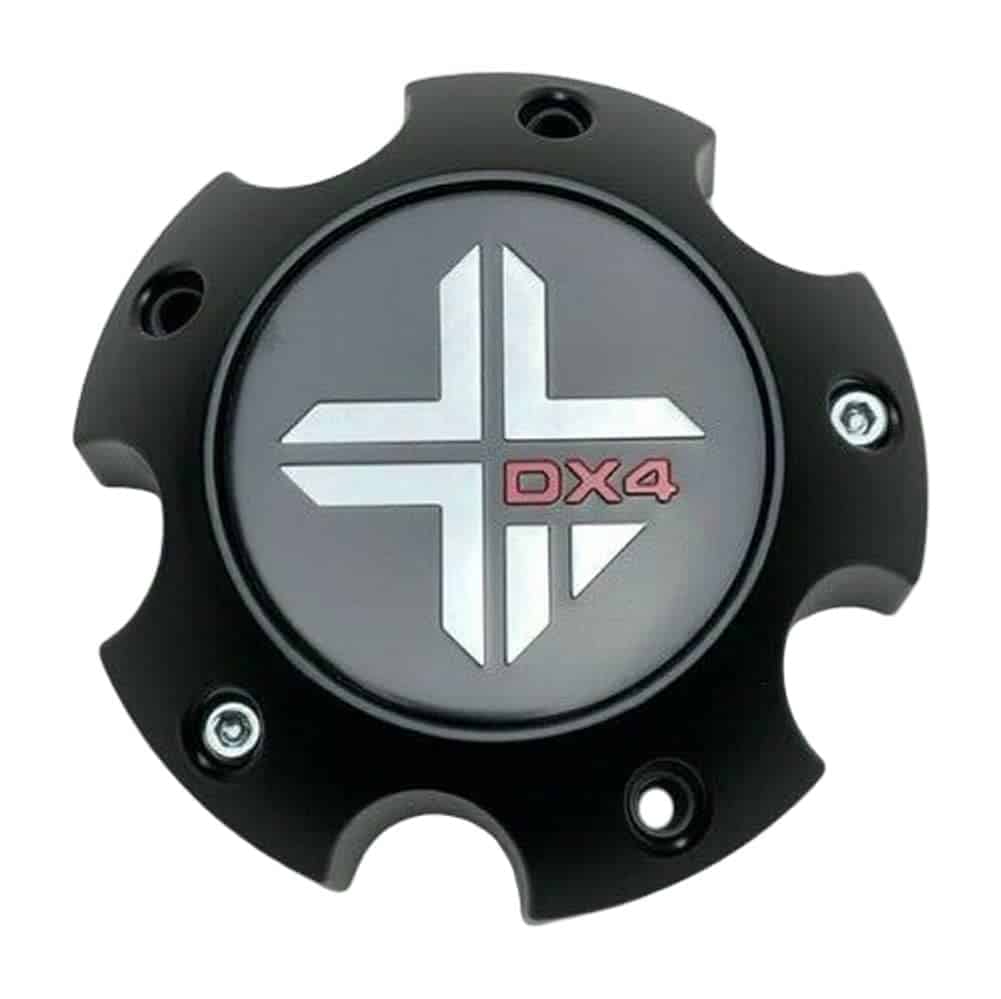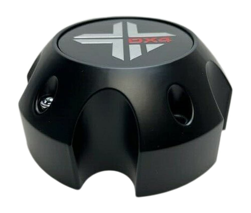 Tapa de centro de rueda mate negra DX4 para 5 birlos con números de parte 73062090F-3 y 73062090F-5. Es totalmente nueva y cuenta con un elegante acabado en negro mate. No incluye tornillo.