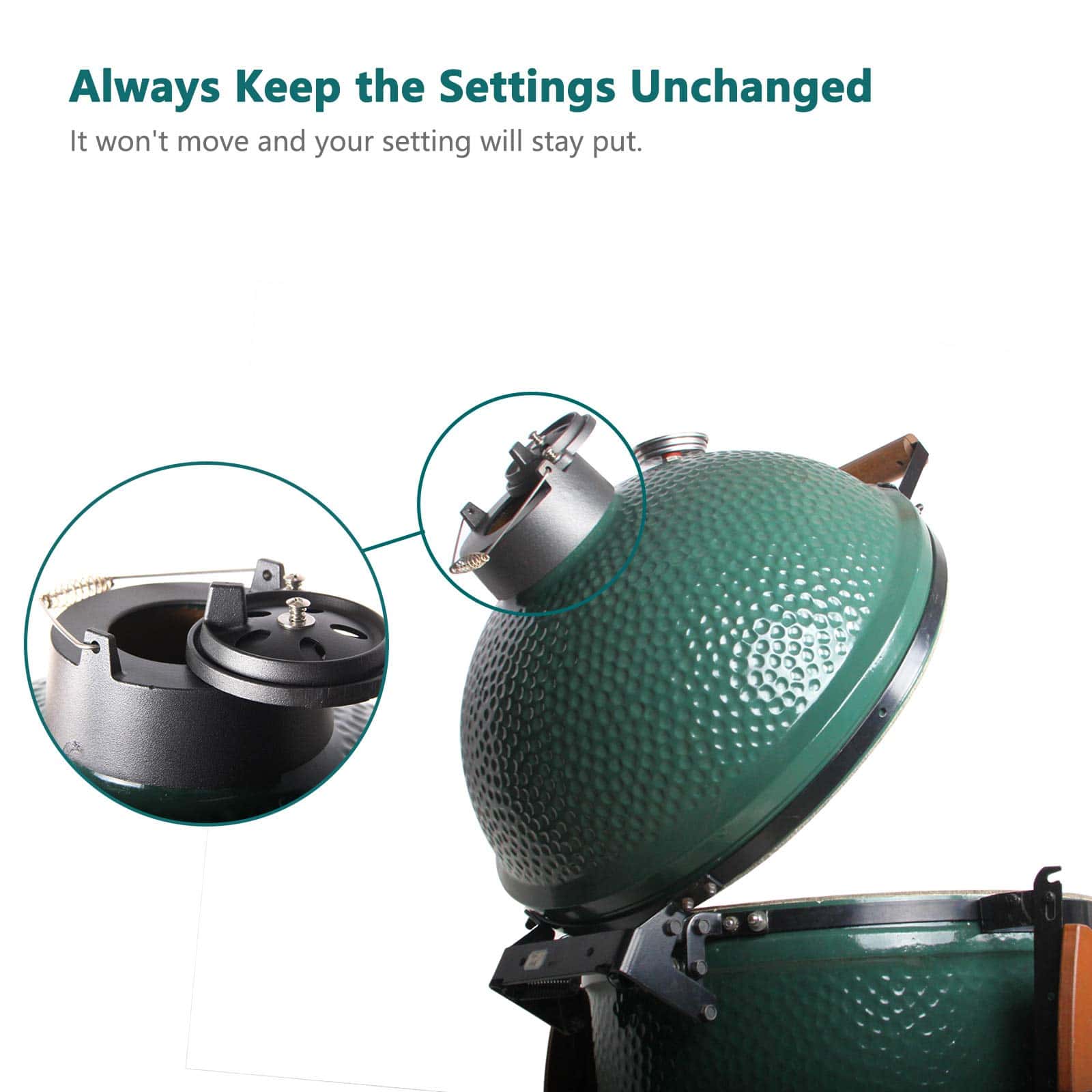 2. ADECUADO PARA – El diámetro interior de esta tapa es de aproximadamente 5 y 9/16 pulgadas. Control de temperatura para grill grande mediano y xlarge Big Green Egg. O cualquier otra parrilla Kamado que tenga un tamaño similar.