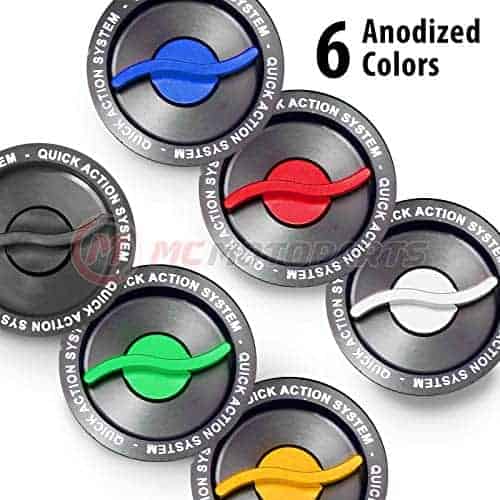 Tapa de Combustible de 1/4 de Giro Rápido CNC Negra con Cierre Central de Color 100% de Aluminio CNC T6061-T6 Garantía de Satisfacción al 100% Hecho de Aluminio Billet CNC mecanizado Ultraligero con Láser Incluye sello de goma y anillo en O para evitar derrames de aceite Diseño de 1/4 de Giro Rápido y sin llave Fácil instalación, Cumple con las especificaciones OEM, puede servir como Reemplazo Directo CNC Anodizado Duro Cortado para peso ligero y ajuste perfecto Cantidad: 1 pieza Base de la Tapa de Combustible: Negra Tapa: Negra, Dorada, Roja, Azul, Verde, Plata Por favor, seleccione un color que le guste. Aviso: Los pernos cromados están incluidos. Observaciones: El color presentado en las imágenes puede variar según la configuración del monitor. Si el comprador desea aclarar el tono de color de los productos reales, contáctenos para más detalles. Puede haber desviación de color debido a diferentes marcas de monitores. Descargo de responsabilidad de marca comercial: Los productos de esta lista no están patrocinados, respaldados o afiliados a las marcas cuyas partes encajan. Todas las marcas de productos, logotipos, marcas y nombres de vehículos son propiedades de sus respectivos dueños. MC MOTOPARTS es la marca registrada de MC Moto Company Limited.
