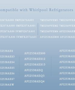 La tapa del filtro de agua WP67006331 es compatible con algunos refrigeradores Whirlpool. Número de parte: 67006331 WP67006331 1187210 12960301 AH2069874 EA2069874 PS2069874. Instalación sencilla, no se requieren herramientas complicadas para la instalación y ahorra en costos de mano de obra. Hecho de materiales resistentes para una vida útil prolongada, es una excelente alternativa. Por favor, revise cuidadosamente el modelo y la marca aplicables antes de comprar para evitar devoluciones innecesarias. Si no está seguro de si la tapa del refrigerador que se ajusta a Whirlpool es adecuada o no, consulte con nosotros. Compatible con modelos de refrigeradores Whirlpool como: 5MFI267AA000 5MFI267AA001 5MFX257AA000 5MFX257AA001 5VMFI267AA00 5VMFI267AA01 5VMFX257AA00 5VMFX257AA01 7MI2569VEM1 7MI2569VEM10 7MI2569VEM2 7MI2569VEM3 7MI2569VEM4 AFI2538AEB AFI2538AEB00 AFI2538AEB12 AFI2538AEB13. Además, es compatible con otros modelos de refrigeradores como AFI2538AEB3 AFI2538AEB4 AFI2538AEB5 AFI2538AEQ AFI2538AEQ00 AFI2538AEQ12 AFI2538AEQ13 AFI2538AEQ3 AFI2538AEQ4 AFI2538AES AFI2538AES00 AFI2538AES12 AFI2538AES13 AFI2538AES3 AFI2538AES4 AFI2538AES5 AFI2538AES6 AFI2538AES7 AFI2538AEW AFI2538A