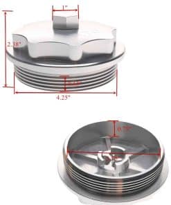 Compatible con: 2003 E350 7.3L V8, 1999-2002 E350 Econoline 7.3L V8, 1999-2003 E350 Super Duty 7.3L V8, 1999-2002 E450 Econoline Super Duty 7.3L V8, 2003 E450 Super Duty 7.3L V8, 2003 E550 Super Duty 7.3L V8, 2000-2003 Excursion 7.3L V8, 1999-2003 F250 Super Duty 7.3L V8, 1999-2003 F350 Super Duty 7.3L V8, 1999-2003 F450 Super Duty 7.3L V8, 1999-2003 F550 Super Duty 7.3L V8, 2000-2003 F650 7.3L V8, 2000-2003 F750 7.3L V8. Reemplaza el número de pieza: F81Z9G270BA, 1831193C91, RK31449, 904-203. Incluye: 1 x Tapa de Filtro de Combustible de Aluminio Billet sin anillo en O.