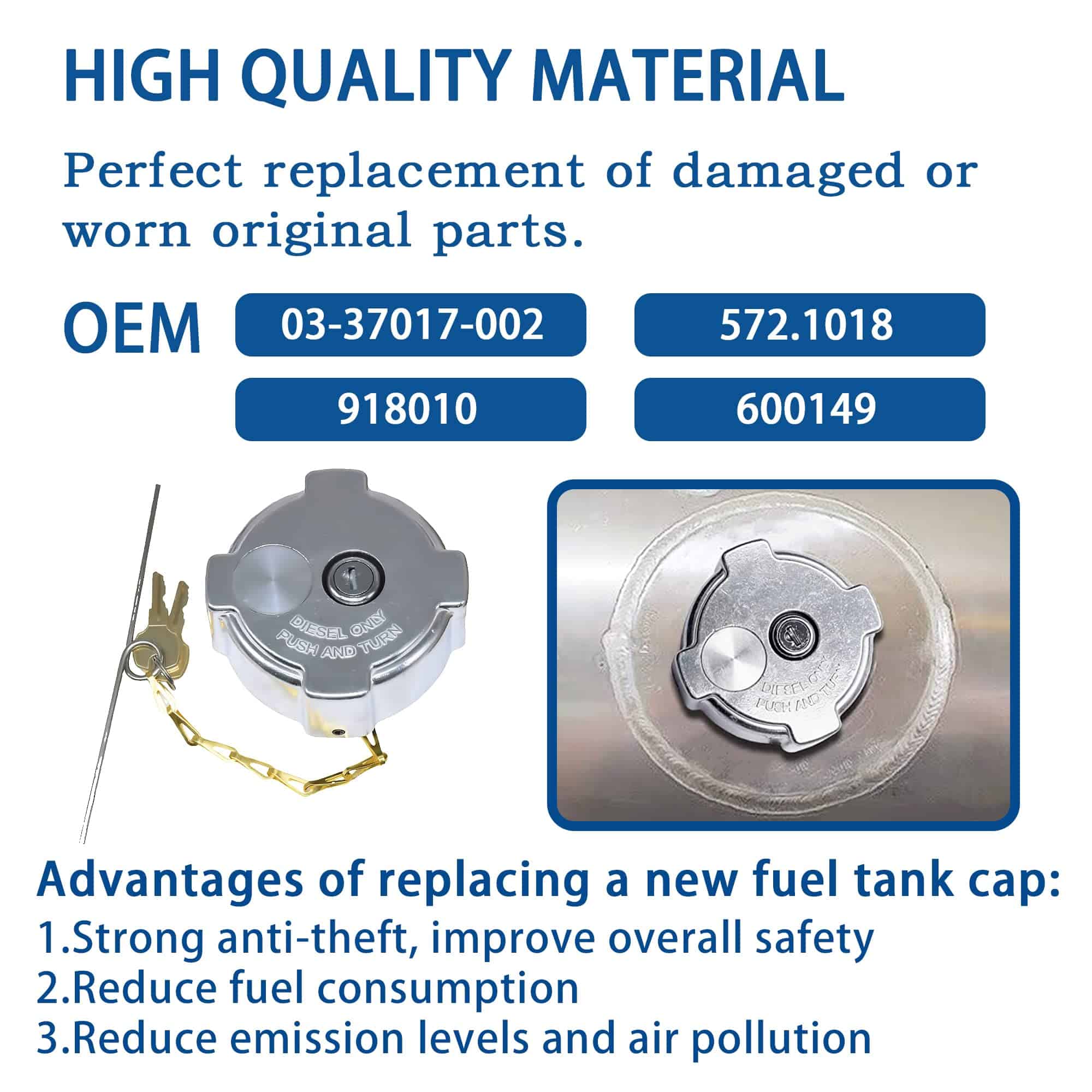1 x Tapa de gasolina con cierre de tanque de combustible para camión 03-37017-002, de 3.5 pulgadas