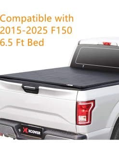 Tapa para caja de tonel suave y enrollable XCOVER, compatible con la Pickup F150 de 6.5 pies del 2015 al 2025. Esta tapa para caja de tonel Xcover es única, con varias innovaciones patentadas en los rieles laterales, barras transversales y pestillos traseros. El estilo de montaje superior garantiza un mejor drenaje del agua y una mínima intrusión en el espacio de la caja. No compatible con modelos que tengan accesorios existentes en los rieles de la caja de su camioneta. El diseño de barras transversales incorporadas pendiente de patente garantiza un acceso completo e instantáneo a la caja para transportar carga, y proporciona un aspecto suave cuando está cerrado. La abrazadera directa sin perforaciones se aplica a su caja con abrazaderas ajustables de servicio pesado, lo que permite una instalación en menos de 20 minutos.