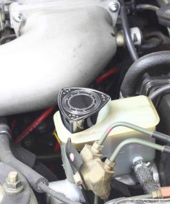 Nuestras tapas de depósito de freno y embrague en forma de rotor están fabricadas en aluminio de alta calidad. Las tapas están disponibles en 9 acabados diferentes. Esta publicación es para el acabado cromado. Las tapas se ajustarán a casi todos los vehículos rotativos de Mazda anteriores a 1993, ya que utilizan el mismo patrón de rosca en los cilindros maestros de freno y embrague.