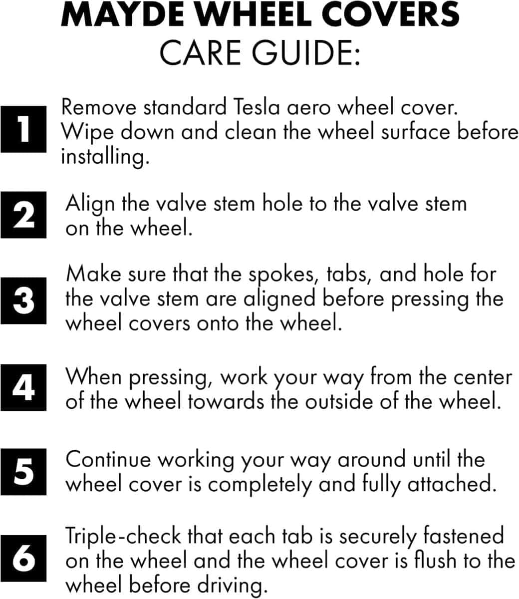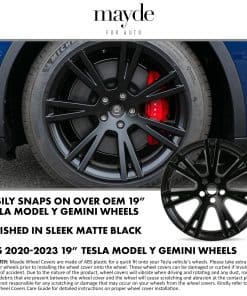 Juego de 4 tapacubos negros mate de 19 pulgadas de Mayde, diseñados para adaptarse al modelo Tesla Y 2020-2022. Estos tapacubos tienen un elegante acabado negro mate que cambia el aspecto de tus ruedas. Se adaptan perfectamente al tapacubos estándar y se pueden combinar con el tapacubos de rueda de Tesla (no incluido). Además, su diseño se extiende hasta el neumático, lo que permite ocultar las rozaduras de bordillo anteriores para un aspecto renovado. Actualiza el aspecto de tus ruedas con estos tapacubos de calidad.