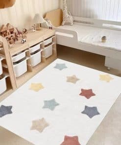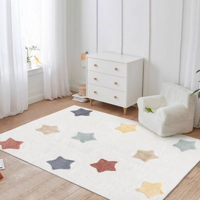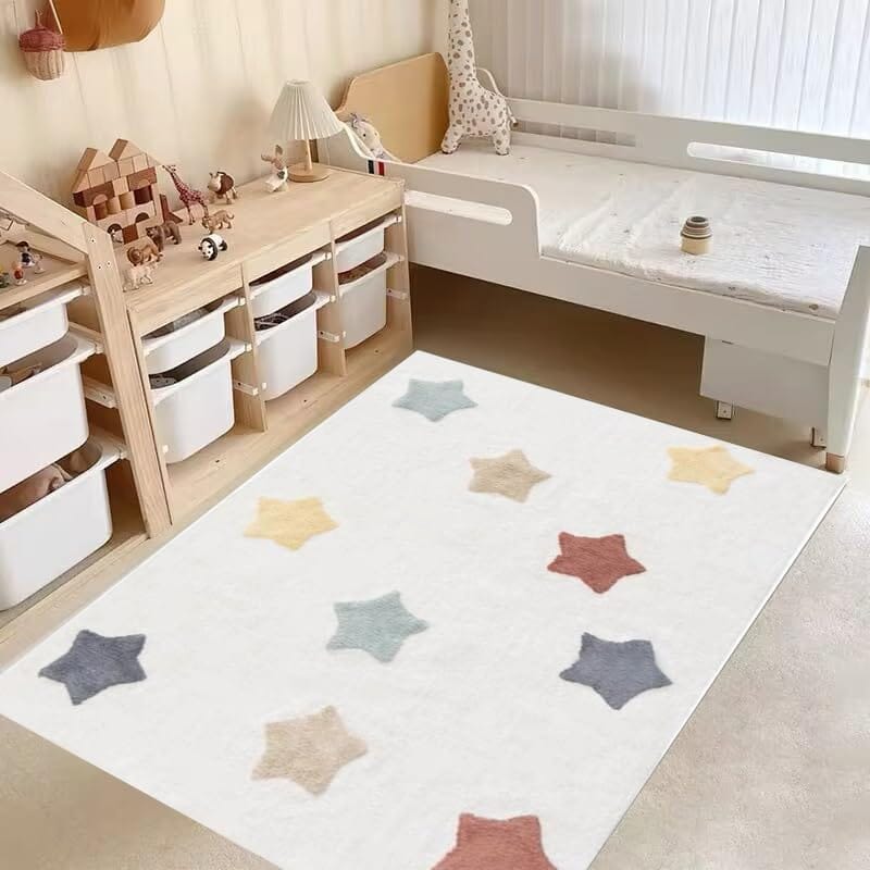 Tapete Lavable a Máquina de Poowe para Niños/Salas de Estar Poowe Los tapetes lavables están diseñados para agregar un toque suave y una apariencia encantadora a cualquier habitación de tu hogar. Nuestras alfombras área utilizando respaldo antideslizante de TPE que es perfectamente adecuado para los pisos de madera y diferentes necesidades de colocación de alfombras. Hay cuatro tamaños disponibles. 2.6×5.3ft, 3.3×5.3ft, 4x6ft y 5x7ft para que elijas libremente. Alta Calidad: Nuestras alfombras lavables con respaldo antideslizante de TPE están tejidas por máquinas sofisticadas. La densidad textil de nuestra alfombra área es más densa que la de otras alfombras ordinarias, por lo que la alfombra será más suave y agradable para la piel. Fácil de Lavar: Lavado a mano o lavado a máquina todo es válido. Ilumine su Hogar: Las alfombras área lavables de Poowe adoptan un estilo de impresión retro que hace que tu hogar sea cálido y encantador. Amigable con Niños y Mascotas El respaldo antideslizante de TPE de la alfombra puede mantener la alfombra área en una posición estable y prevenir resbalones. Ya sea que camines descalzo o te acuestes con tus hijos o mascotas, puedes sentir el calor y la comodidad debajo.