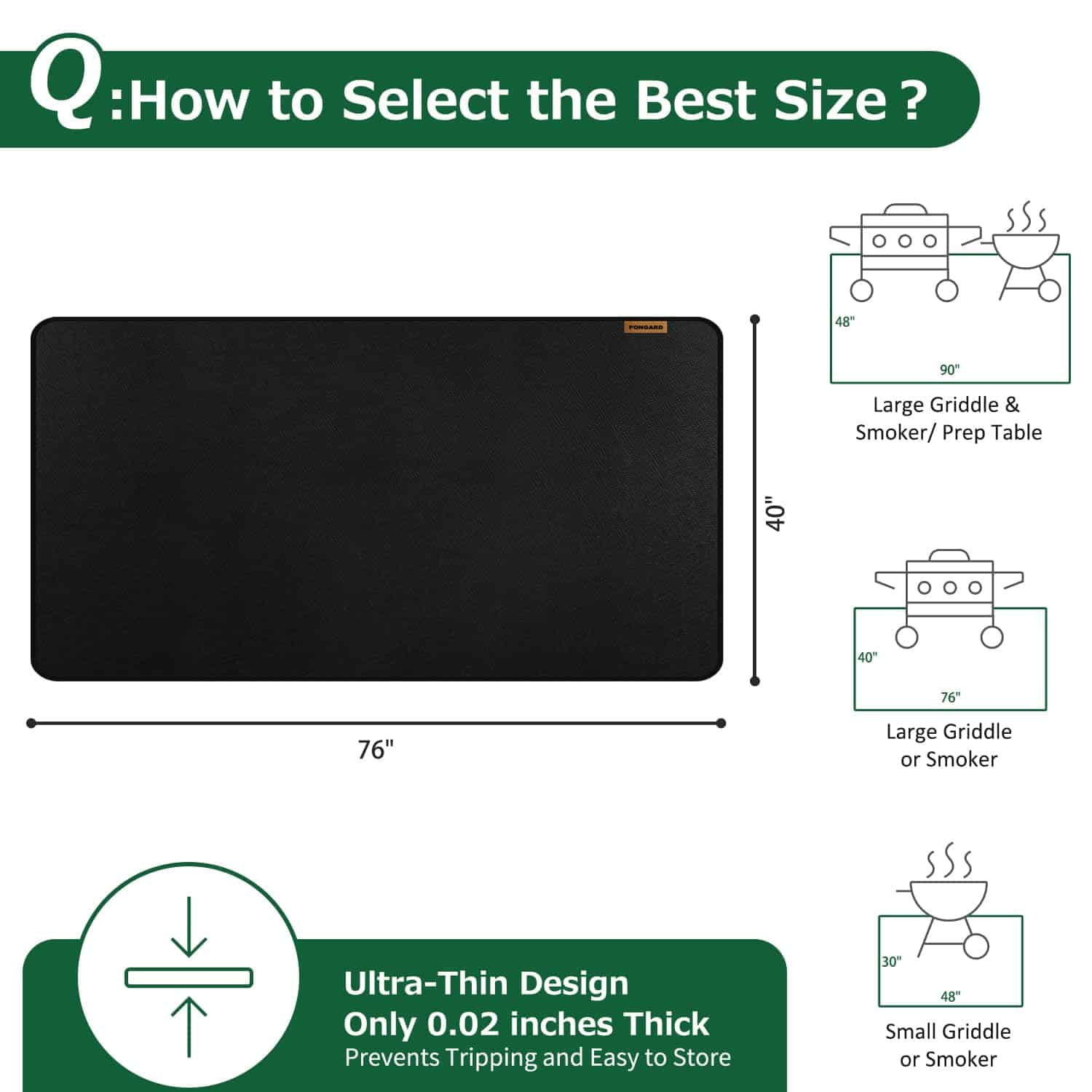 2. Resistente al agua y a las manchas ¡Mantén tu área de asado sin desorden! La superficie impermeable y resistente a la grasa del tapete bloquea derrames, goteos de aceite y manchas que podrían dañar tus suelos.