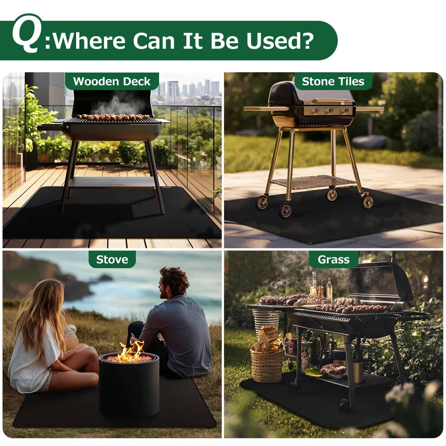 1. Resiste el calor y es seguro contra incendios Construido con silicona de alta calidad retardante de fuego, este tapete de doble cara actúa como un escudo confiable contra altas temperaturas, grasa y brasas errantes perfecto para proteger tu patio, cubierta o campamento.