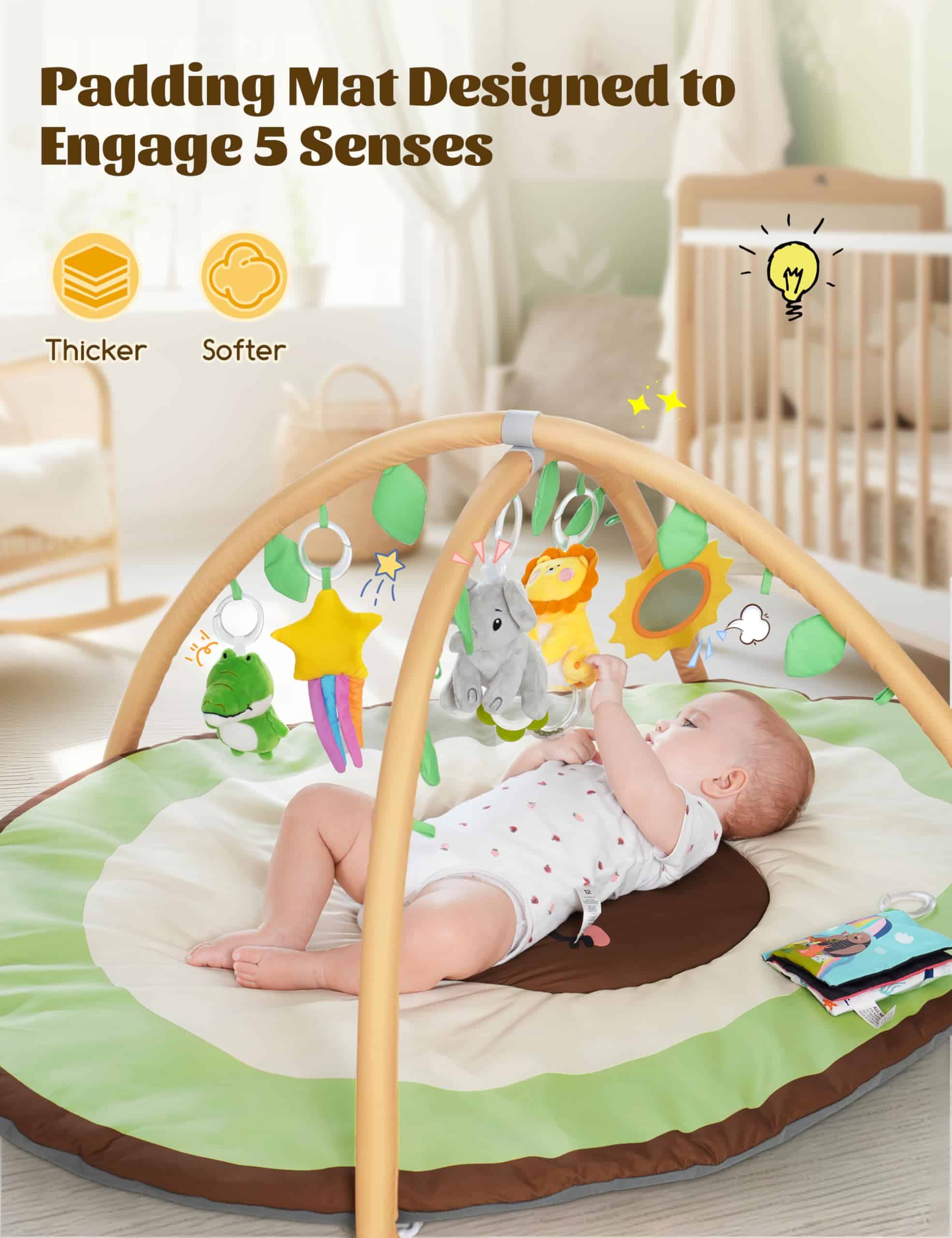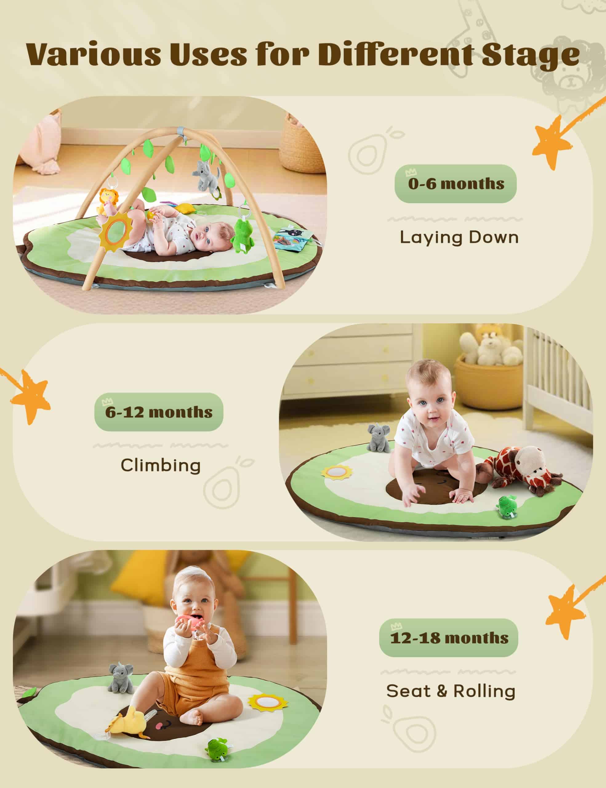 5. Regalo Perfecto para Recién Nacidos y Decoración: El gimnasio de juego infantil, meticulosamente diseñado basado en una amplia investigación, exhibe tonos suaves y patrones adorables. Es el regalo perfecto para ocasiones como el bautizo y cumpleaños de un bebé, fiestas para futuras mamás y Navidad. También funciona como un excelente accesorio para sesiones fotográficas y una encantadora decoración para la guardería.