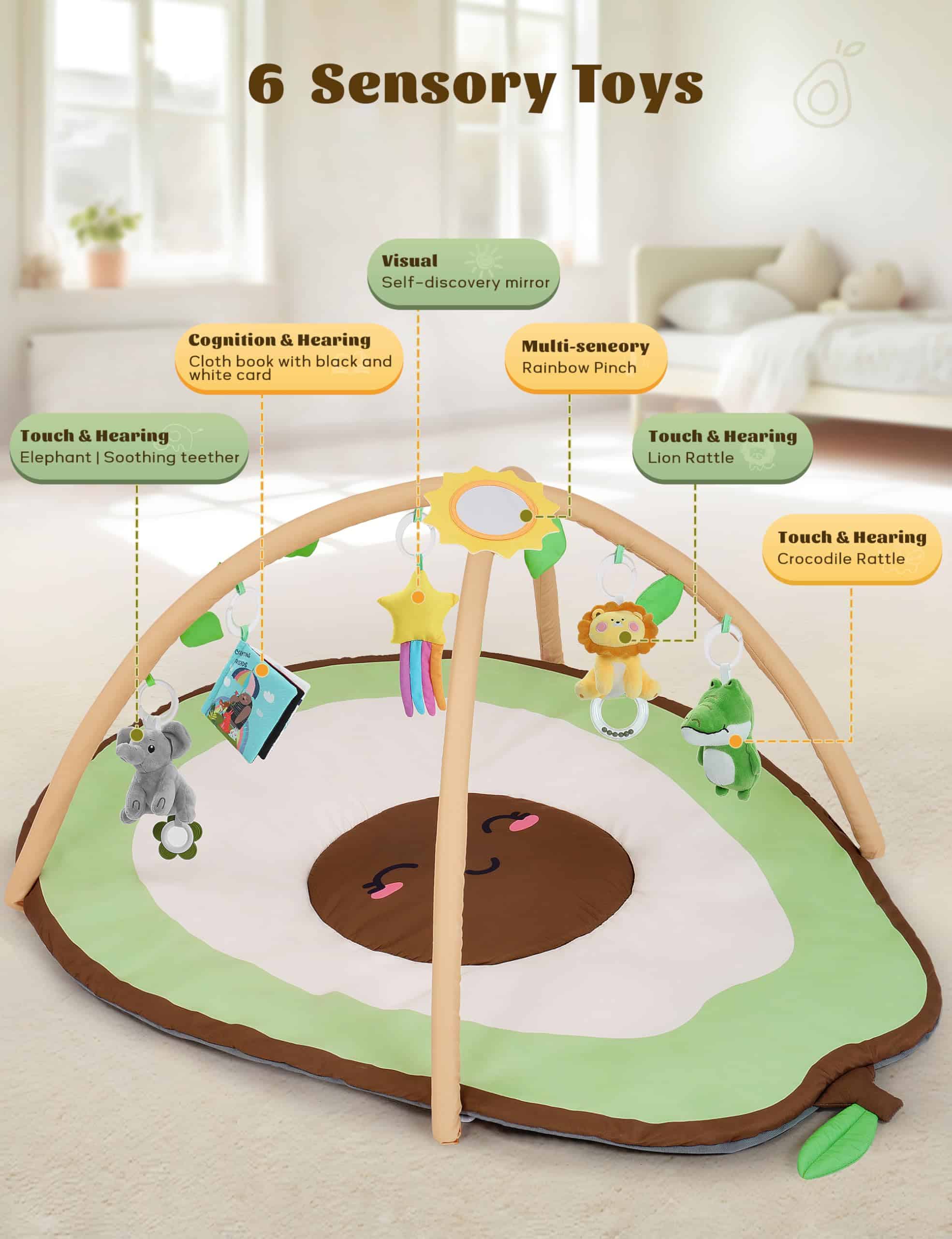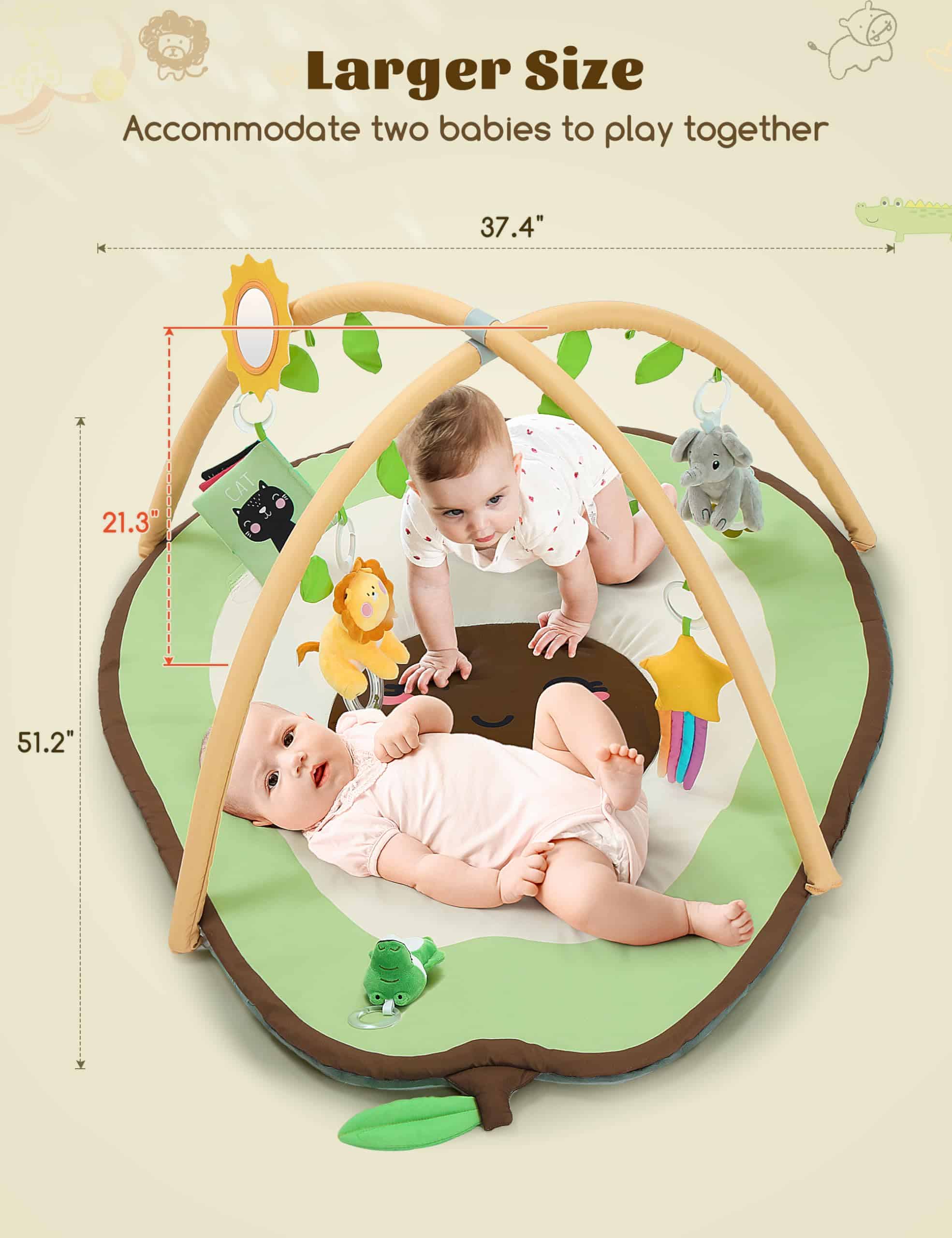 3. Área de Juego Extra Grande y Suave: El centro de juegos para bebés, adorablemente diseñado en forma de aguacate, ofrece un área de actividad expansiva de 51.2 x 37.4 pulgadas. Puede ser utilizado como tapete de gateo, tapete de tiempo boca abajo o tapete de actividad para tu bebé. Certificado por CPC & CE, hecho de tela gruesa y de alta calidad, es lavable a máquina con un respaldo antideslizante para garantizar que tu bebé disfrute de un tiempo de juego limpio y seguro.