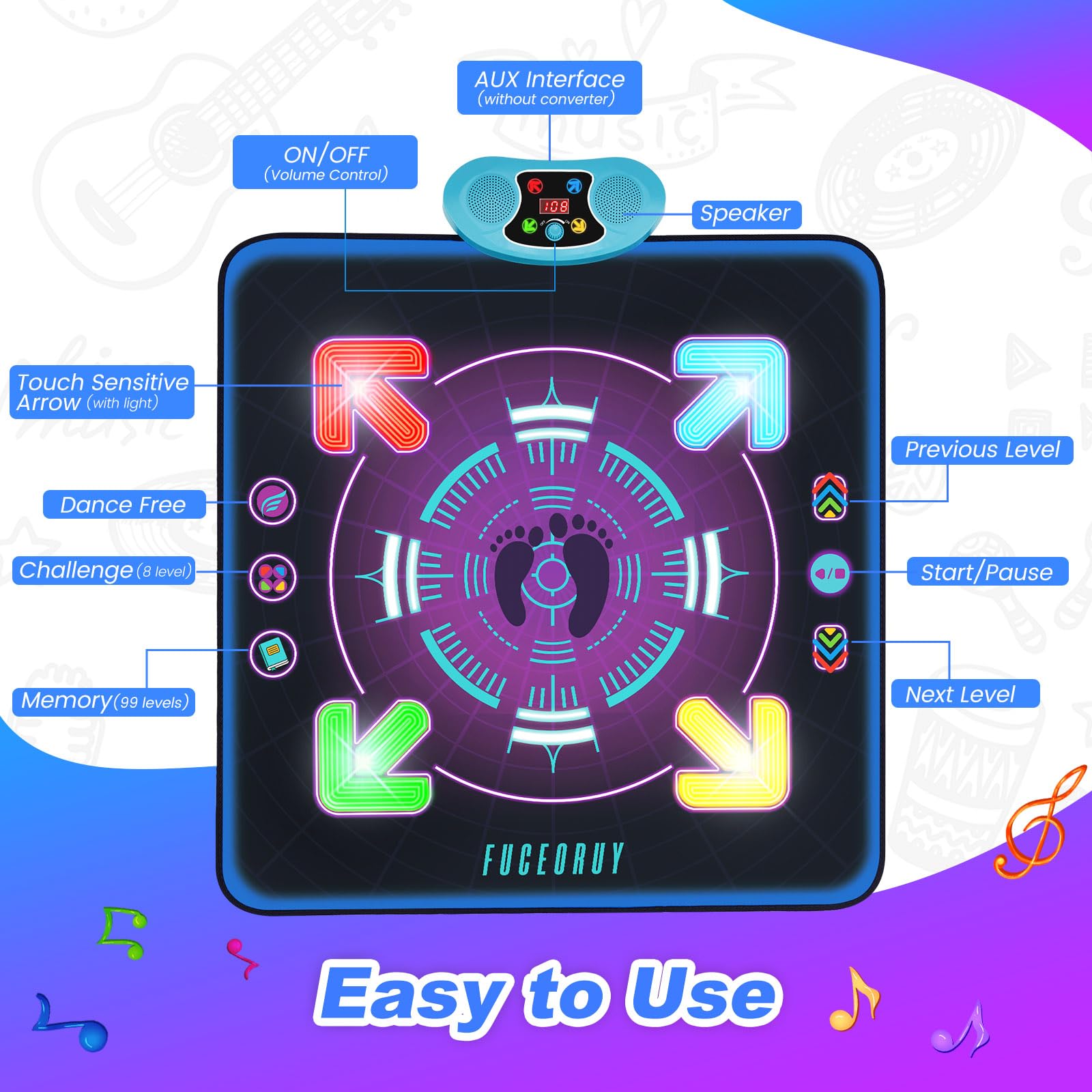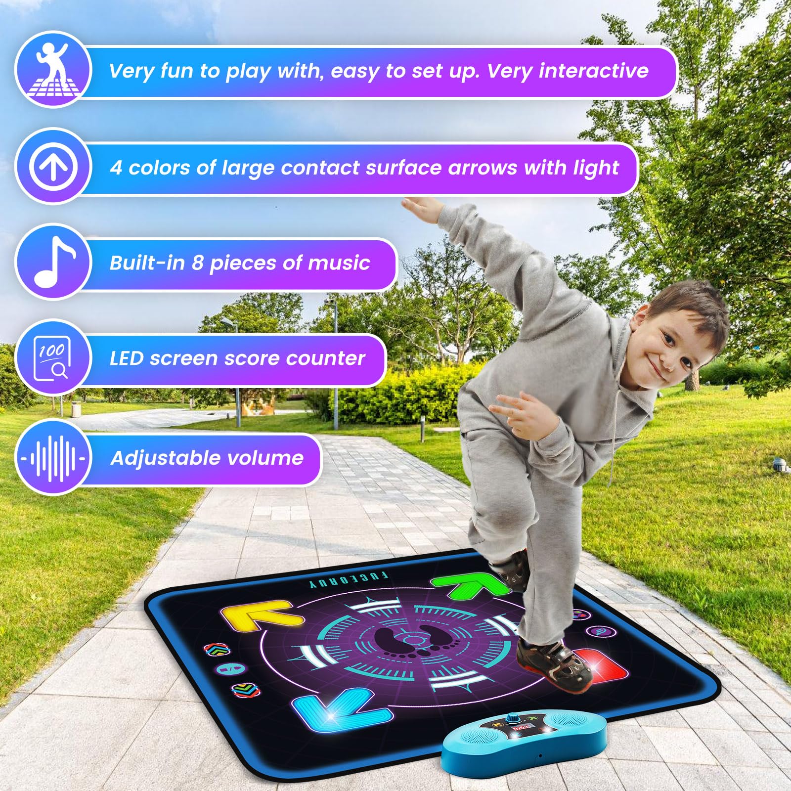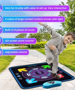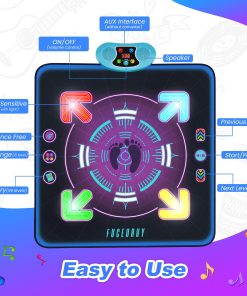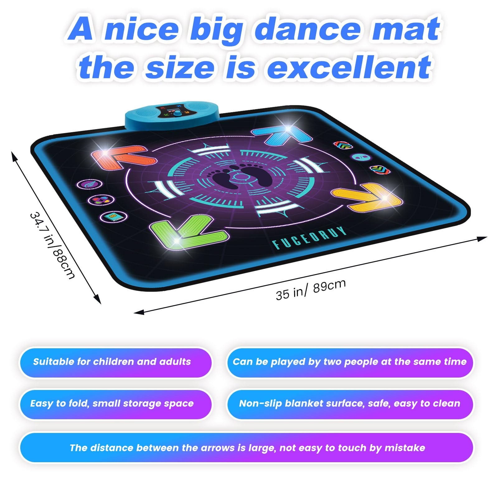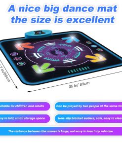 El tapete de baile FUCEORUY para niños es un juguete divertido y educativo ideal para niños de 4 a 12 años. Fabricado con materiales de alta calidad como PVC suave y duradero, este tapete de baile proporciona una experiencia de juego segura y cómoda. Con rayas antideslizantes en la parte inferior, los niños pueden disfrutar de horas de baile sin preocuparse por resbalones.