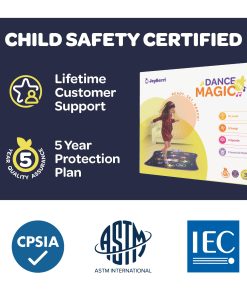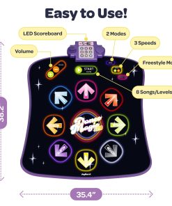 El tapete de baile DanceMagic ofrece una variedad de opciones con 8 niveles, 3 velocidades dinámicas y 2 modos. Los niños pueden bailar al ritmo de 8 canciones pegajosas e incluso disfrutar del modo libre con volumen ajustable. La seguridad es una prioridad, ya que se prueba rigurosamente y se certifica para cumplir con los estándares de seguridad de EE. UU., y está diseñado para comodidad y conveniencia con una superficie suave y acolchada. Este tapete versátil no solo es divertido; fomenta el desarrollo de los niños a través del ejercicio, la coordinación ojo-mano y las habilidades de memoria. Además, viene con una garantía de 5 años y soporte al cliente de por vida de JoyBerri.