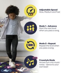 El tapete de baile DanceMagic ofrece una variedad de opciones con 8 niveles, 3 velocidades dinámicas y 2 modos. Los niños pueden bailar al ritmo de 8 canciones pegajosas e incluso disfrutar del modo libre con volumen ajustable.