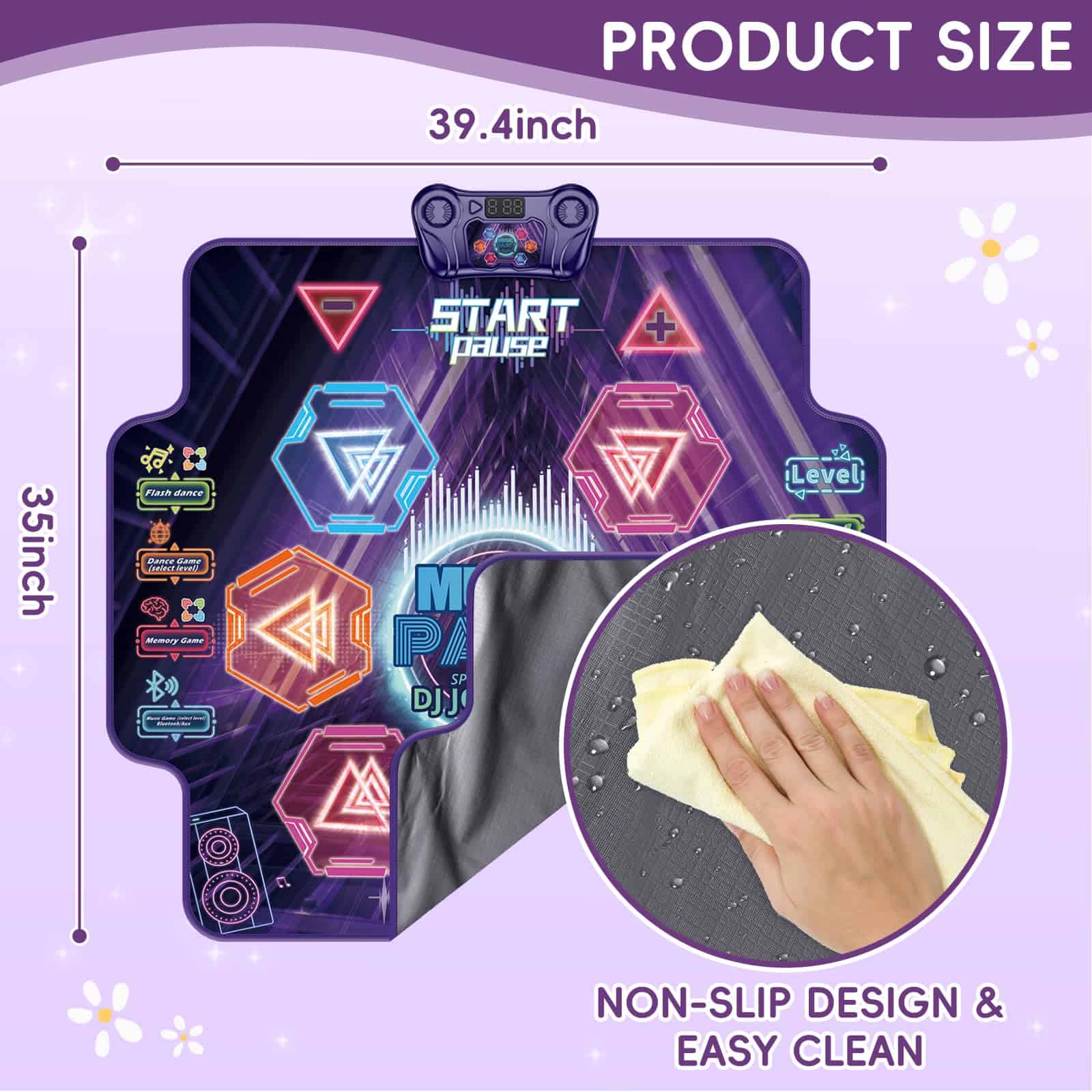 2. Duradero y Antideslizante: Nuestro tapete de baile está hecho de material vinílico resistente, libre de toxinas, acolchado suave, fácil de limpiar. La parte posterior del tapete de baile está diseñada para no resbalar, juguetes seguros para niñas.