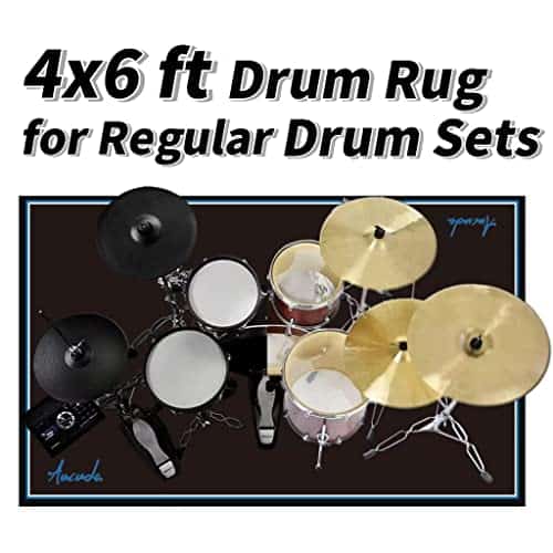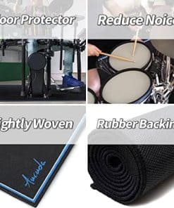 Tapete de batería Aucuda, un imprescindible para bateristas y niños nuevos en el aprendizaje. Todo el diseño está hecho pensando en la comodidad y calidad del baterista: Tejido tejido firmemente que permite que tus soportes y espuelas se adentren para máxima estabilidad. El respaldo de goma antideslizante de alta calidad garantiza estabilidad para toda tu configuración cuando se coloca sobre superficies duras. Correa de velcro disponible que facilita llevarse la alfombra. Pasó la prueba de derrame: al beber o brindar, no tendrás que preocuparte de que un derrame pueda arruinar la alfombra. TAMAÑO: 120cm 180cm/4ft 6ft, una excelente opción para bateristas, niños. Material de superficie: 100% poliéster, respaldo: goma antideslizante