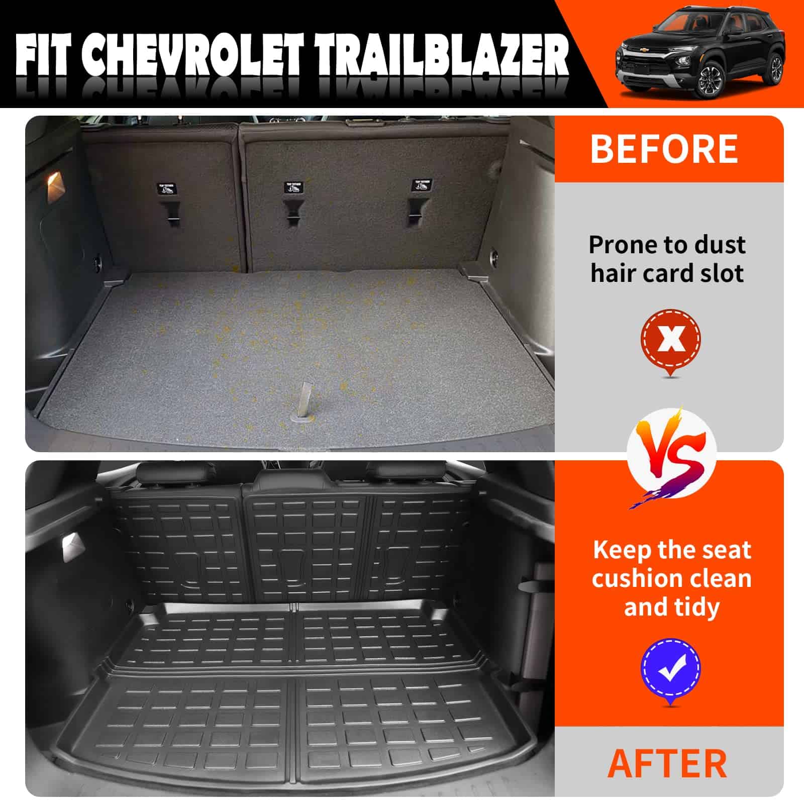 Función: Nuestros tapetes de respaldo trasero y tapete de cajuela para Chevrolet Trailblazer pueden mantener ordenado y limpio el interior de tu auto. Los objetos en la cajuela ya no estarán dispersos por todas partes. El auto original también estará protegido de los rayones.