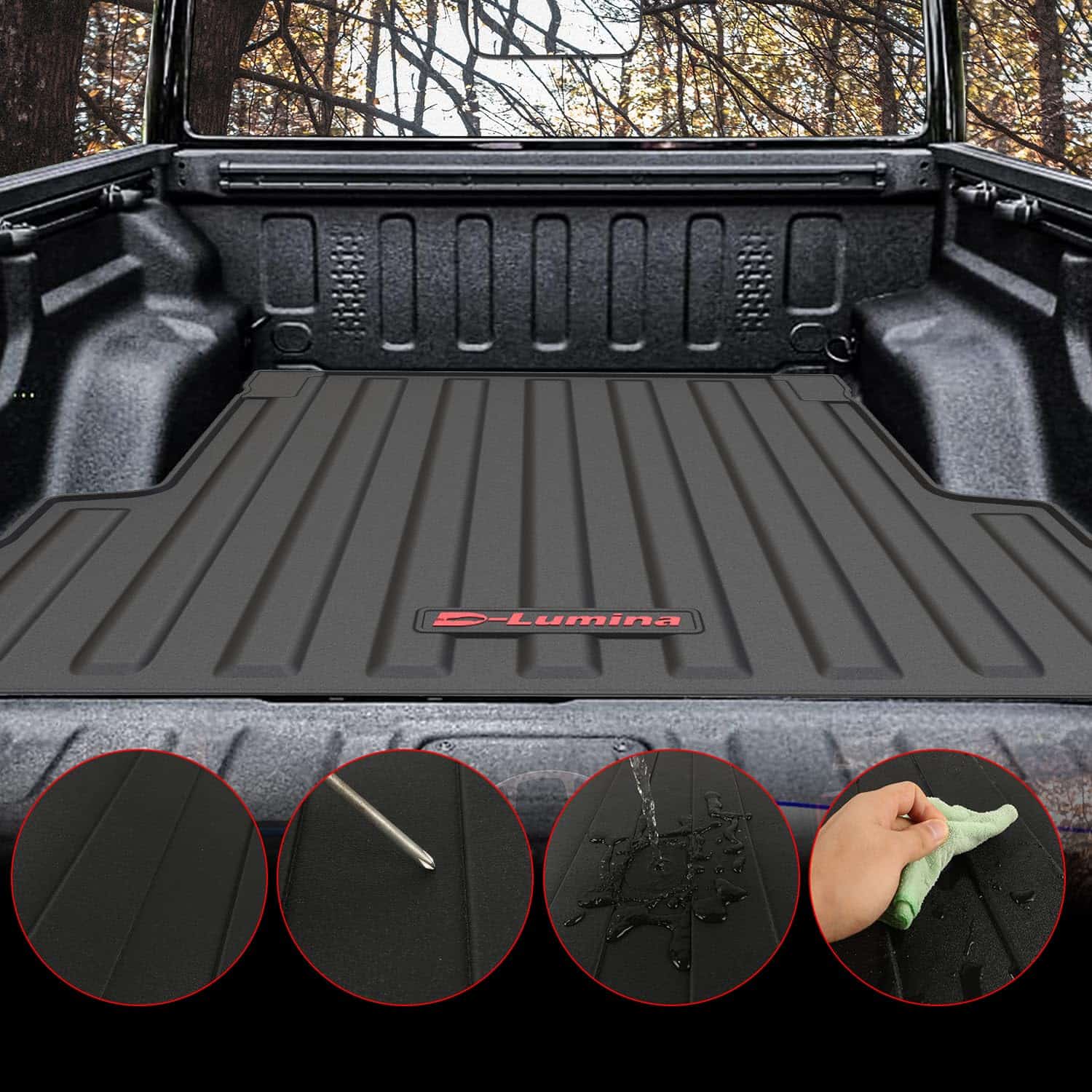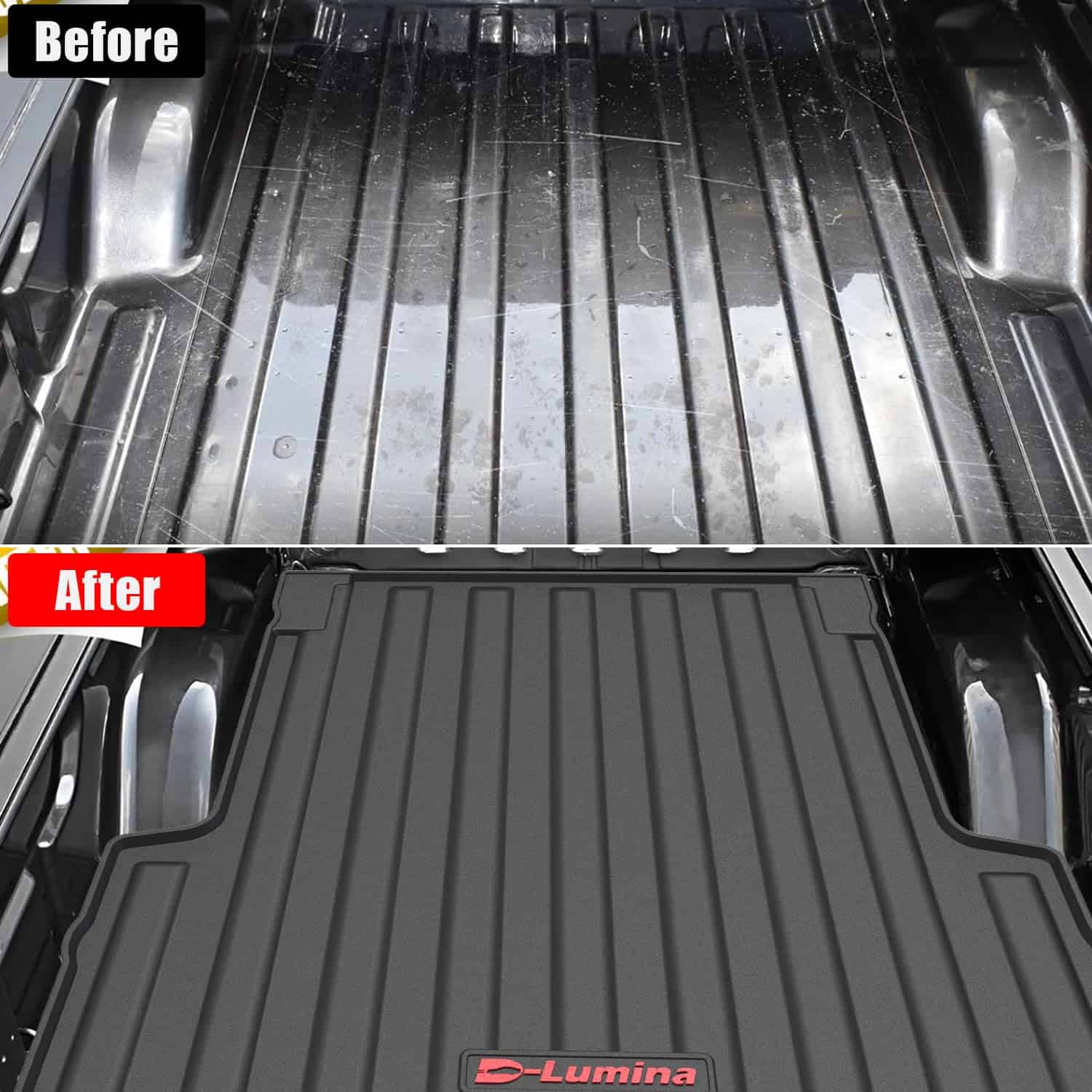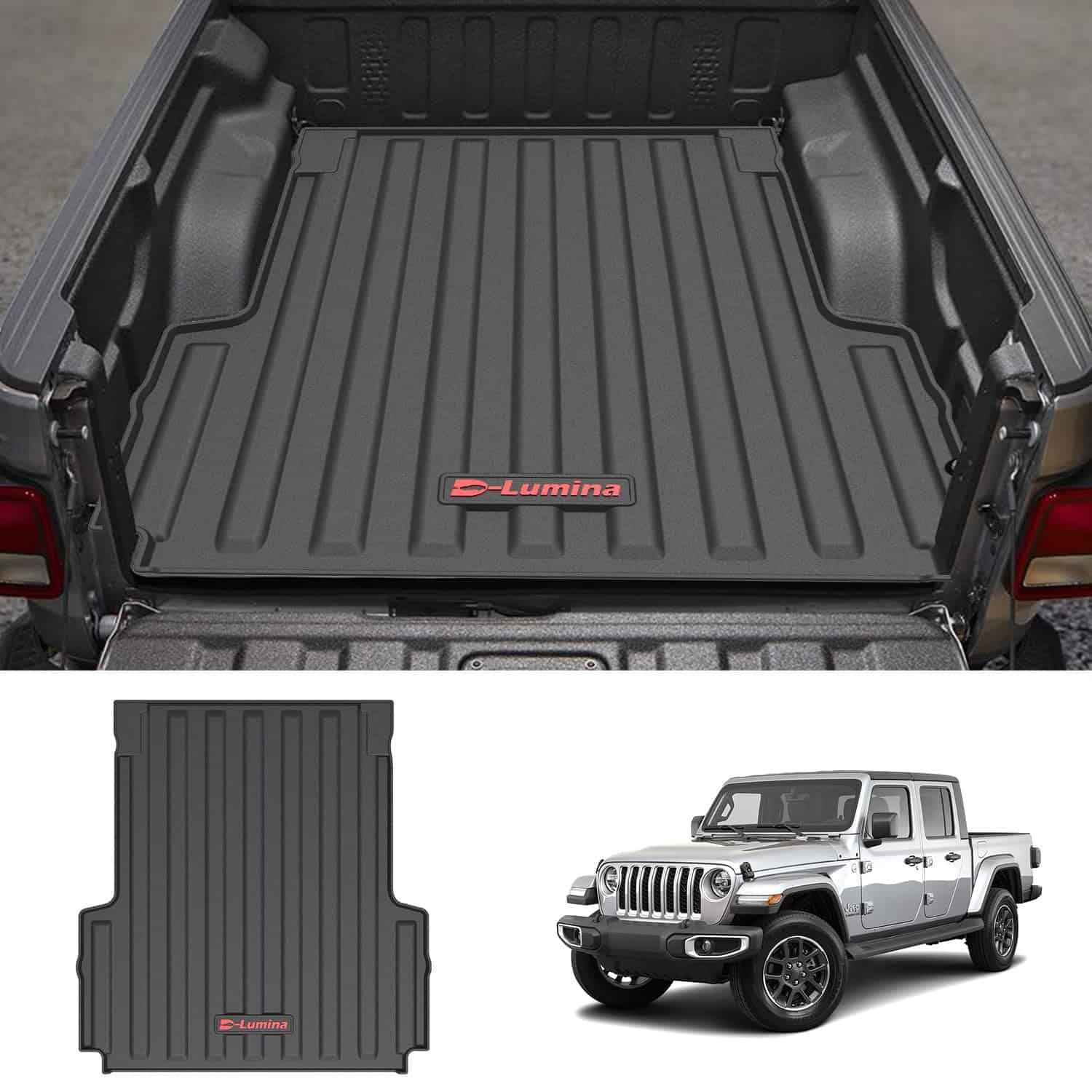 Tapete de cama D-Lumina Compatible con 2020 2021 2022 2023 2024 2025 Jeep Gladiator JT Crew Cab con Camas de 5 Pies – Forro de Cama Trasera Resistente 3D TPV, Impermeable para Protección de Todo el Clima Guarda de Carga. Este tapete de cama de camión es compatible con el Jeep Gladiator JT crew cab con camas de 5 pies de 2020 a 2025. Se ajusta perfectamente al diseño del piso del camión, y es un accesorio imprescindible para el Gladiator. Está fabricado con material de alta calidad 3D TPV (Tereftalato de Polivinilo Termoplástico), que es resistente, impermeable, duradero, resistente a la suciedad, resistente al desgaste y protege el camión de arañazos. El diseño de textura específico evita que la carga se resbale y protege el vehículo de objetos afilados. También protege el automóvil de la nieve, la lluvia o las manchas, manteniéndolo más limpio y ordenado. Es fácil de limpiar, solo necesita enjuagarse con una manguera de agua durante 10 minutos. D-Lumina se compromete a mejorar la calidad del producto e innovar en la practicidad de los productos automotrices. Si hay alguna pregunta durante la entrega o un defecto de fabricante confirmado, por favor, avísenos para resolver los problemas lo antes posible.