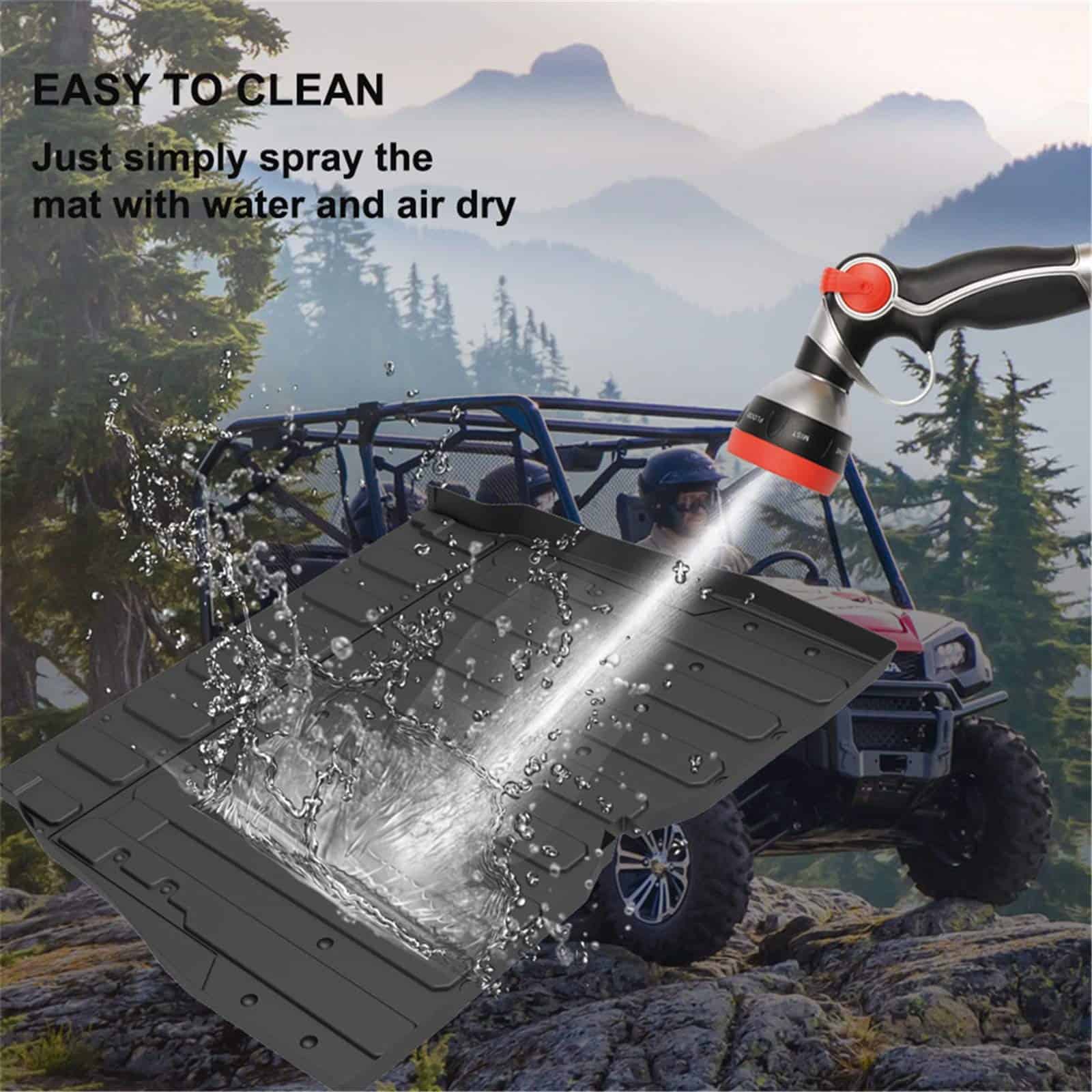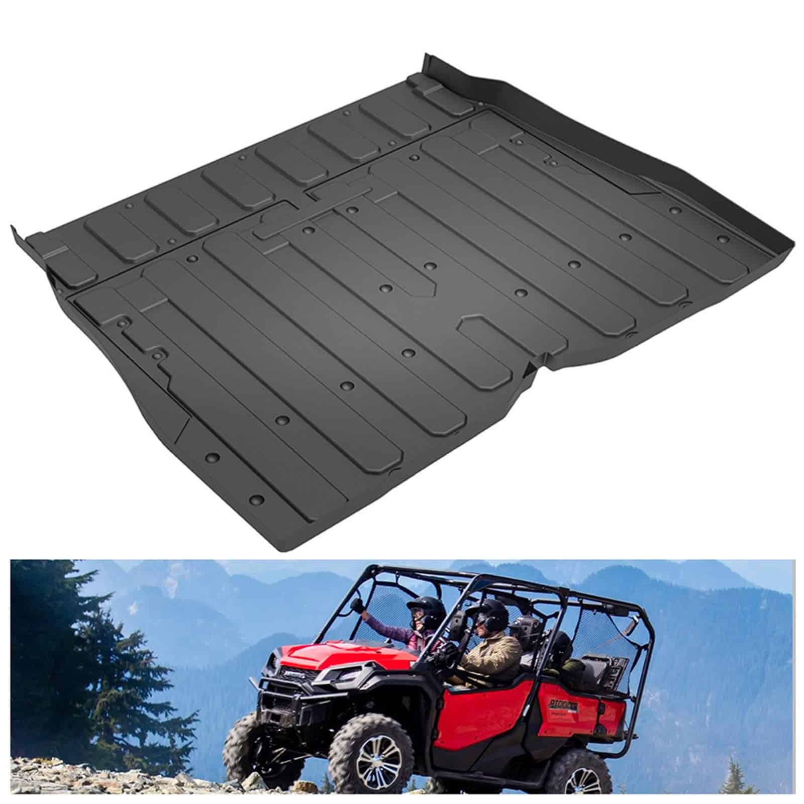 Los tapetes de piso KIWI MASTER para Honda Pioneer protegen los pisos del conductor y del pasajero del vehículo. Hechos de material TPE, estos tapetes resistirán los elementos severos, previniendo manchas y humedad en las alfombras originales de fábrica. Limpie fácilmente los tapetes con jabón y agua caliente o fría y un cepillo suave, no se necesita fregar fuerte ni limpiadores especiales, el respaldo especial de nudos antideslizantes evitará cualquier deslizamiento o movimiento al contacto. Mantenga su enfoque en su conducción, y no en ajustar sus tapetes para automóviles, mantenga el piso de su automóvil en condiciones prístinas, fácilmente, de la marca confiable en accesorios para automóviles. Especificación: Color: Negro Material: TPE Peso de Envío: 11.5 LBS Dimensión de Empaque: 40.7 x 5.7 x 5.7 pulgadas Ajuste: Honda Pioneer SXS 1000 M5 (5 Asientos) 2016-2019 Incluye: 1 Set de Tapetes para Honda Pioneer
