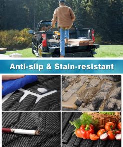 Tapete de cama para Chevy Silverado/GMC Sierra Denali 1500 2019-2024. Hecho de material TPE duradero premium, resistente a la abrasión, no se desliza y no tiene olor. Canales únicos para atrapar arena, agua, barro, suciedad, lluvia y barro. Los laterales con labio elevado evitan que líquidos y desechos lleguen al piso original. Fácil de limpiar con un paño húmedo o enjuagar con agua. Atención: el tapete de cama está doblado para el envío, colóquelo al sol para quitar las arrugas.