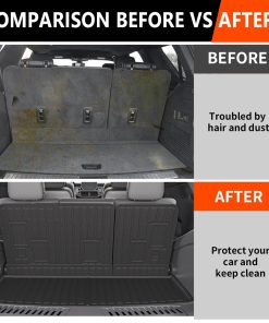 Material de alta calidad: Los forros de carga están fabricados en material de alta calidad TPE, que es resistente a los arañazos, duradero y no tiene mal olor. Incluso si lo dobla con fuerza, no se estropeará fácilmente. Nuestro protector de asiento trasero y forro de maletero pueden resistir todo tipo de climas extremos, como días de fuertes lluvias o tormentas de nieve, etc. Puede limpiar las alfombrillas con agua y un trapo.