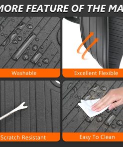 2. Material de Alta Calidad: El tapete de carga y la 3ra fila de respaldo están hechos de material de TPE de alta calidad. Son resistentes a los arañazos, flexibles y no tienen mal olor. Pueden durar mucho tiempo. Incluso si los dobla fuertemente, no se estropearán fácilmente. Nuestros tapetes de carga pueden soportar todo tipo de condiciones climáticas extremas, como días de fuertes lluvias o tormentas de nieve, etc. Puede limpiar los tapetes con agua y un trapo.