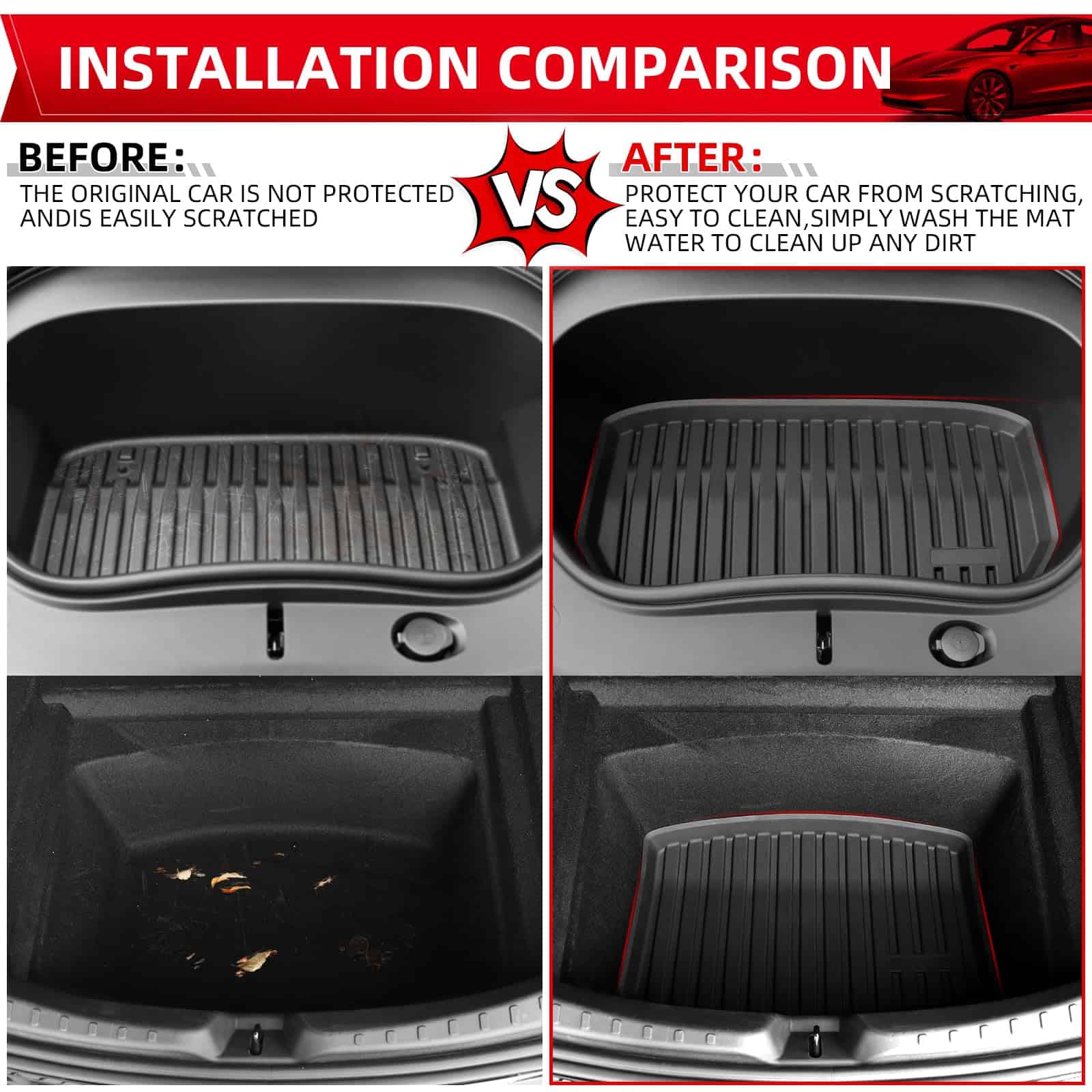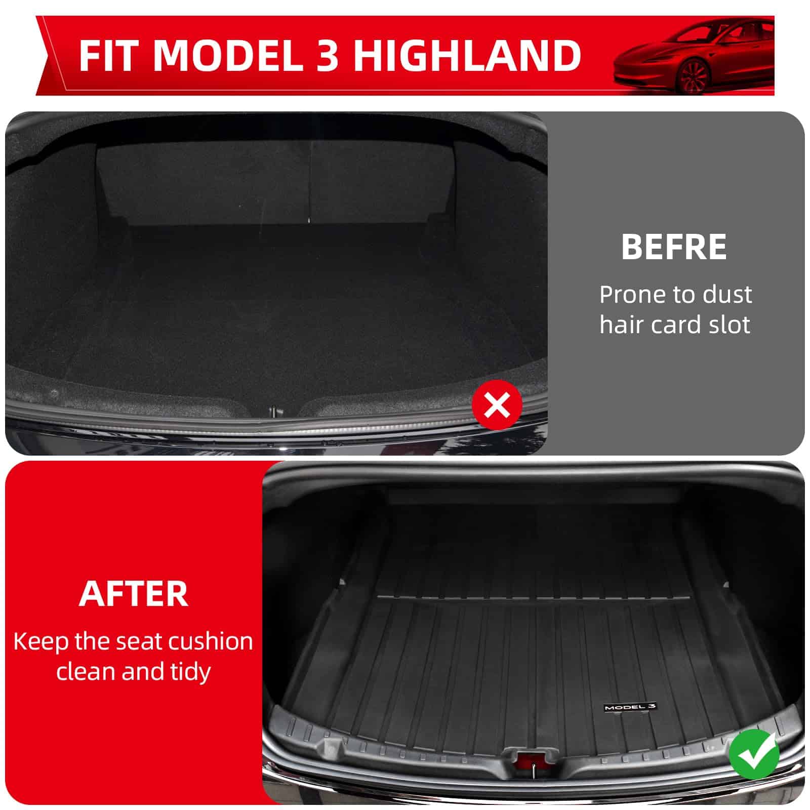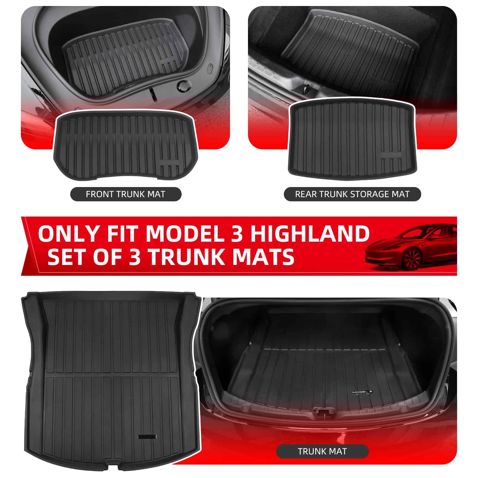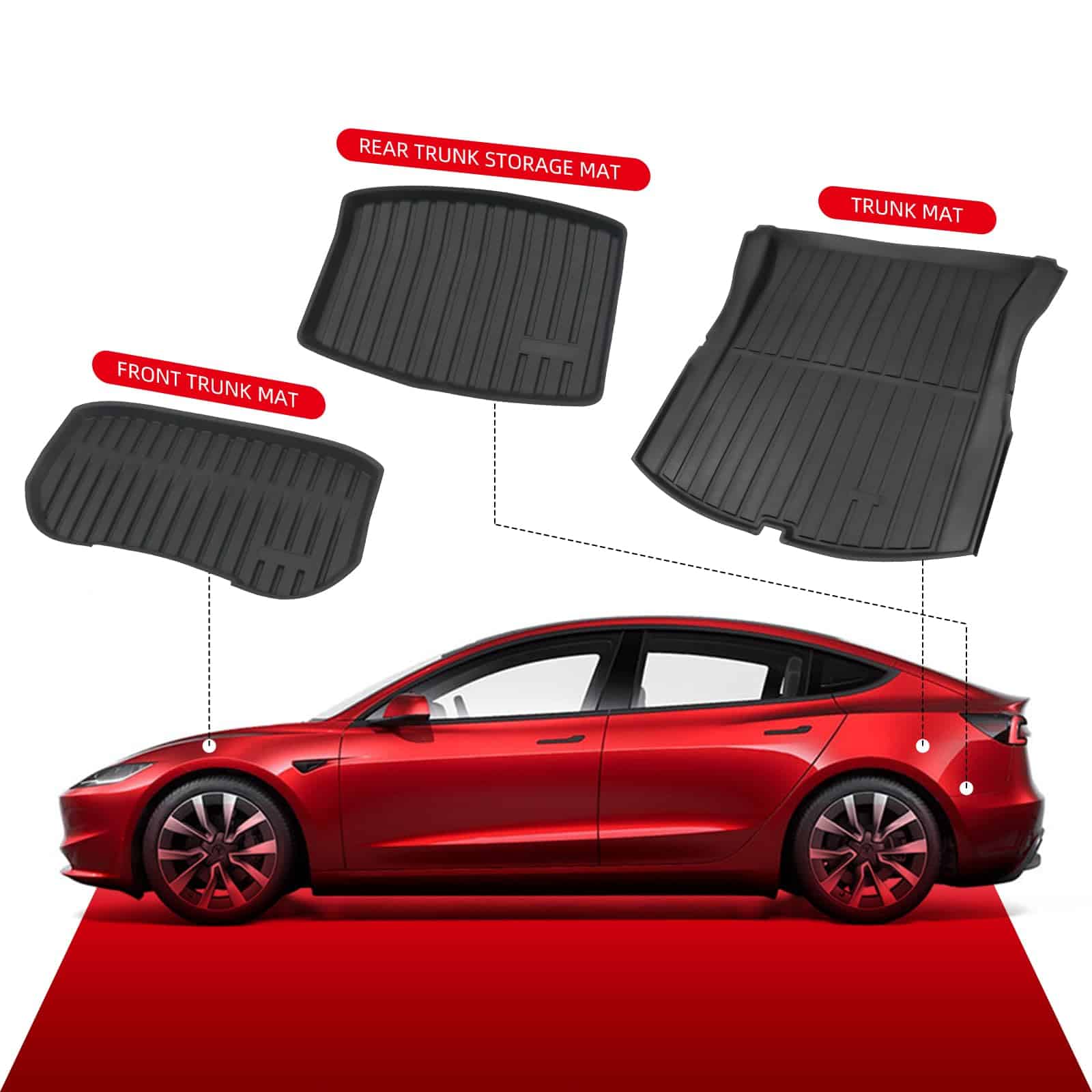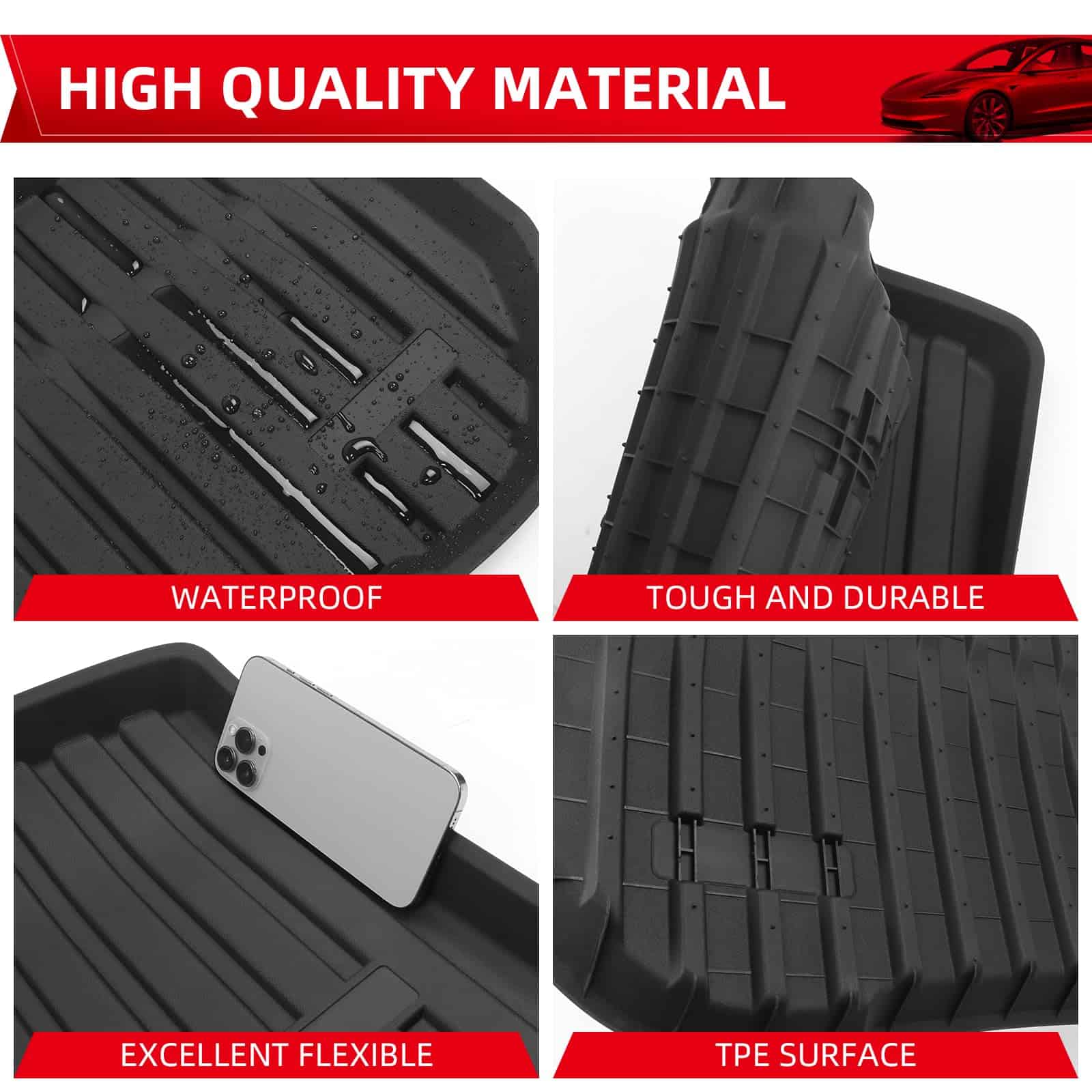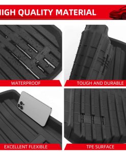 Tapete de carga compatible con el Nuevo Tesla Model 3 Highland Tapetes para maletero Tapete frontal Trasero de almacenamiento de TPE Liners de carga del Modelo 3 de 2024 hecho con material TPE de alta densidad, fácil de restaurar y mantener. Los tapetes son no tóxicos, inodoros, no contienen látex, cadmio, plomo o ningún PVC dañino. Mantienen la flexibilidad incluso en climas extremadamente fríos. El Tapete de almacenamiento TPE para el modelo 3 de Tesla de 2024 puede prevenir que la lluvia, nieve, líquidos, barro y otros desastres se filtren en la alfombra. Al limpiar, simplemente limpie con una toalla o retire el tapete del frente y del maletero y enjuague para quitar la suciedad. Los tapetes de carga se pueden instalar y quitar fácilmente con una simple colocación, y las uñas antideslizantes totalmente cubiertas en la parte inferior evitan que los tapetes se deslicen. Este proceso permite detalles intrincados y patrones perfectos, lo que resulta en surcos profundos y dis…