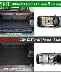 Compatibilidad: El Tapete de Carga se ajusta a Toyota 4Runner 2010-2022, solo se ajusta a modelos de 5 pasajeros con Bandeja de carga deslizante o bandeja trasera deslizante. Diseñados de acuerdo con el coche original e incluyen Tapete para Respaldo Trasero, Tapete para Maletero Trasero con 2 Bandejas.
