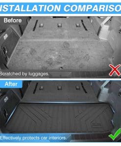 El revestimiento de carga evita que las manchas o el desorden de cualquier tipo dañen su área de carga. Con este revestimiento de carga, puede mantener la alfombra de su área de carga impecablemente limpia y al mismo tiempo conservar su funcionalidad. Fabricado con un material de polietileno de baja densidad, este revestimiento resistente también incluye un labio elevado y un borde exterior moldeado para proteger su alfombra de la suciedad, derrames de aceite, suministros de pintura y otros desorden corrosivos que desgastan la alfombra. Su superficie antideslizante texturizada caracterizada por intrincados patrones acanalados está especialmente diseñada para evitar que el revestimiento se deslice. El revestimiento de carga viene en tamaño máximo para protección adicional y ofrece una selección de estilos y materiales para proporcionar no solo mero protección, sino también atractivo a su área de carga. Razones para elegirnos: – Mucho más económico en comparación con otras tiendas. – Protección contra todo tipo de clima: nieve, barro, arena, agua salada y más. – Labio protector contra derrames (evita que los derrames lleguen a la alfombra). – Fácil de limpiar y mantener (desmontable del vehículo). Paquete que incluye: 1 x Tapete de maletero 3D