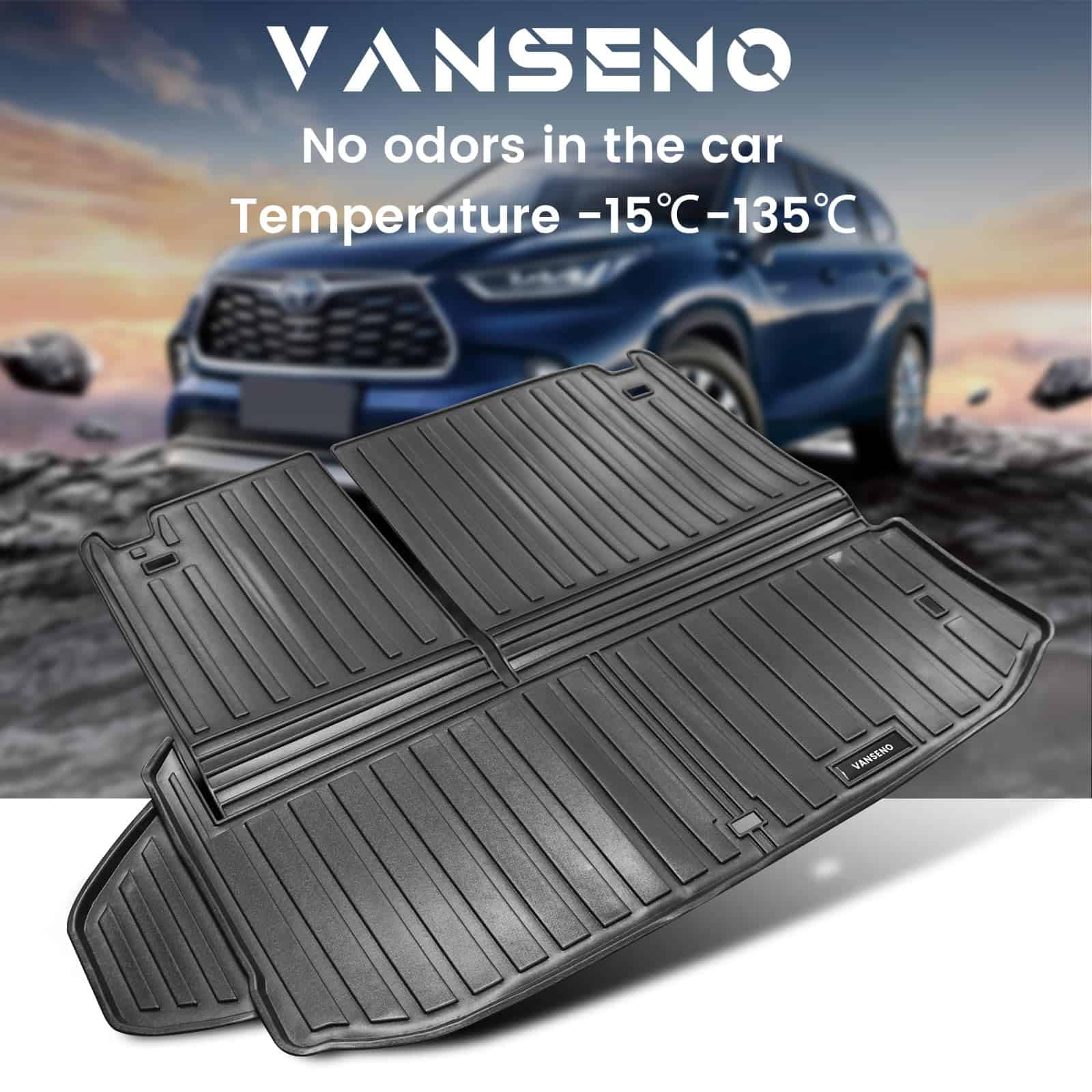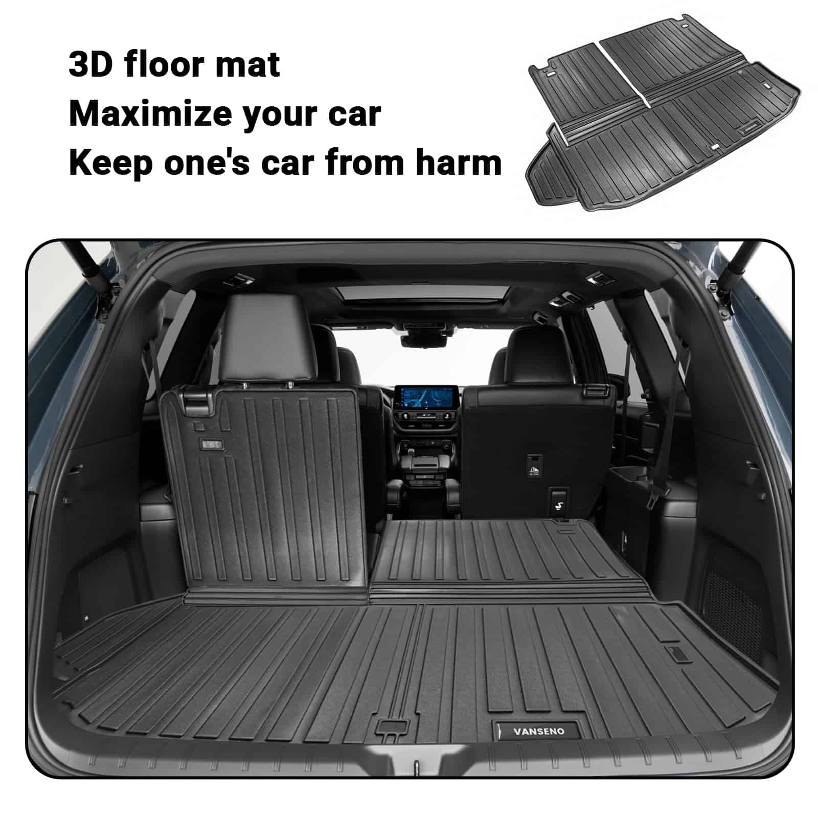 1.Compatible para Toyota Highlander Accesorios Personalizados: Forros de maletero con tapete para respaldo. Estos tapetes para maletero están medidas precisas y diseñadas para adaptarse al Toyota Highlander 2020 2021 2022 2023 2024.