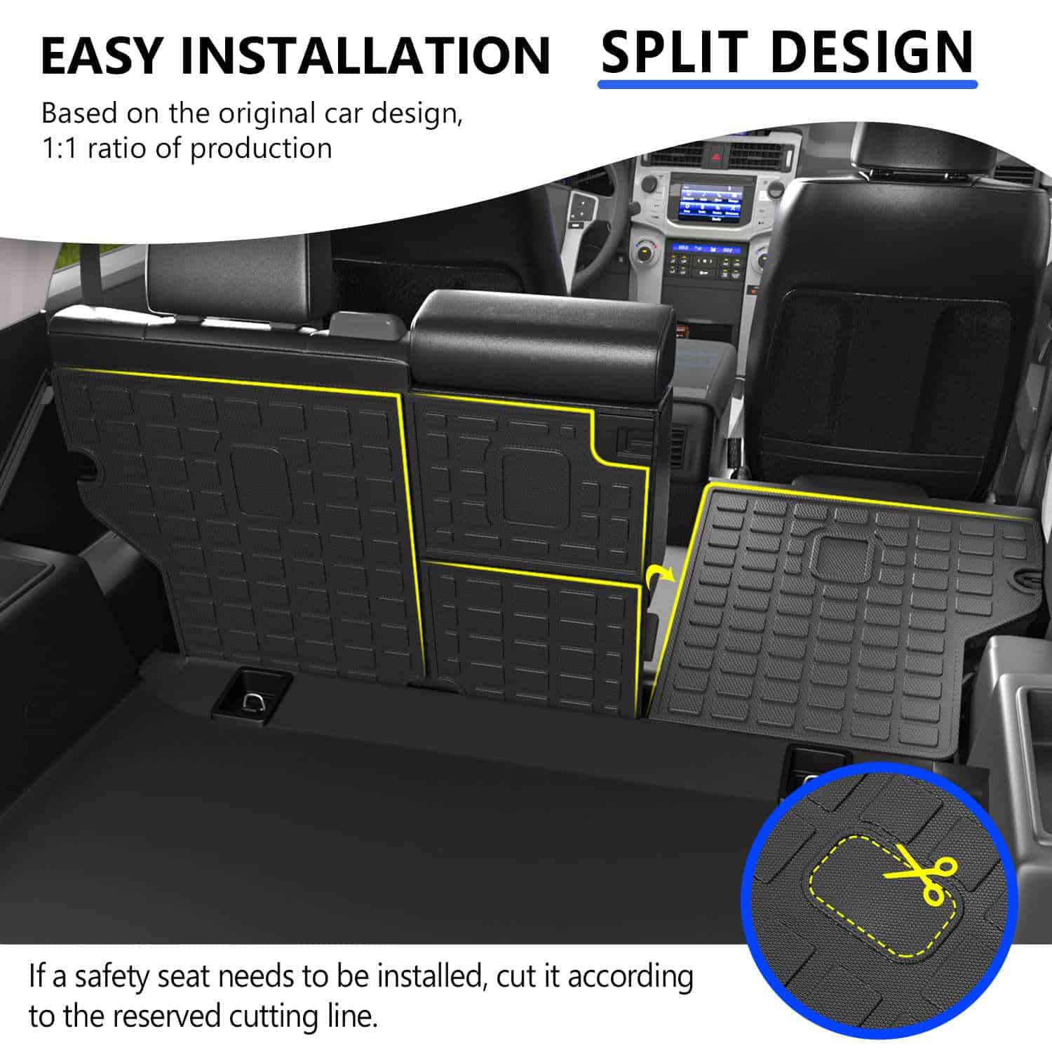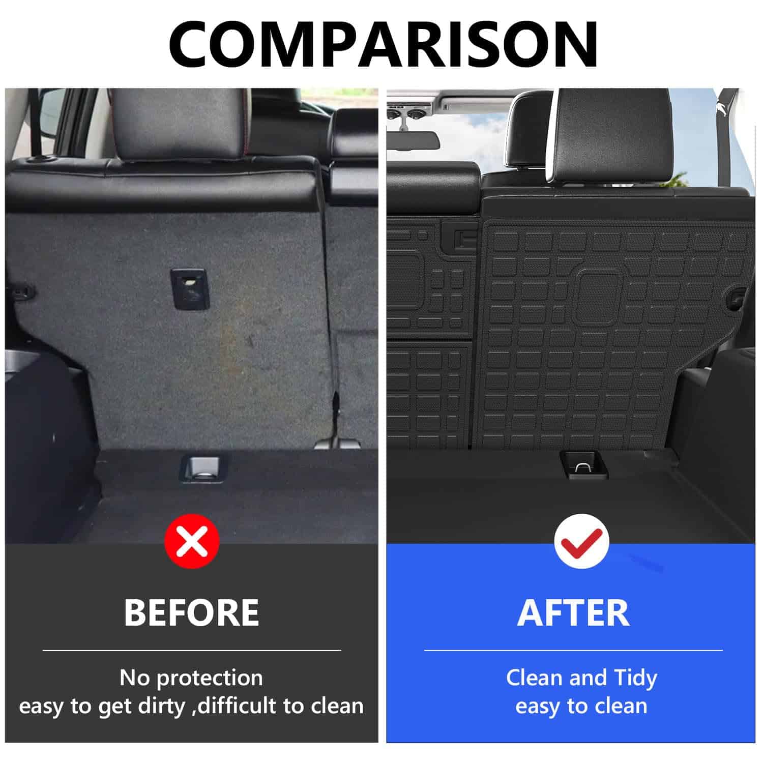 3. Función: El reemplazo de los tapetes de maletero para Toyota 4Runner puede proteger tu coche de arañazos. Tu asiento trasero del coche estará más ordenado y limpio.