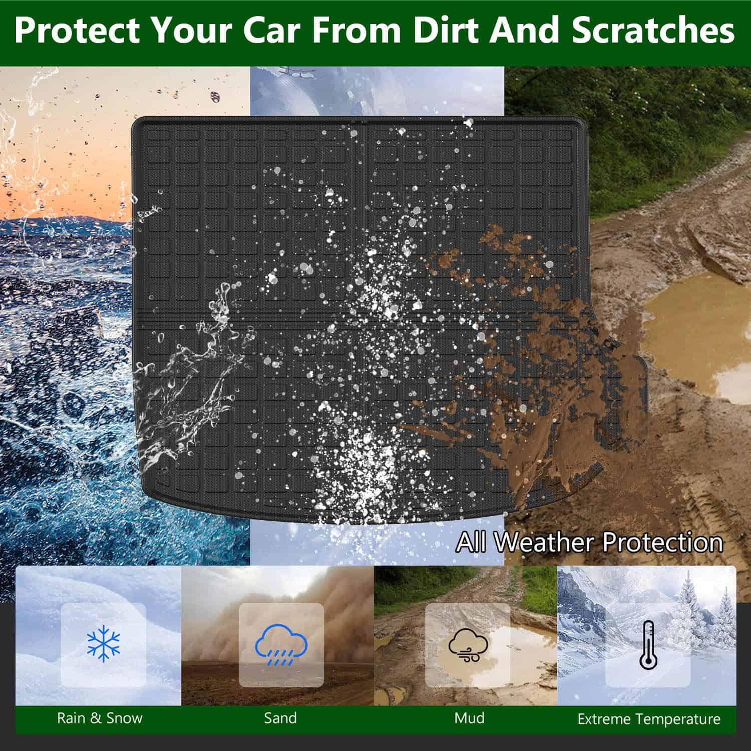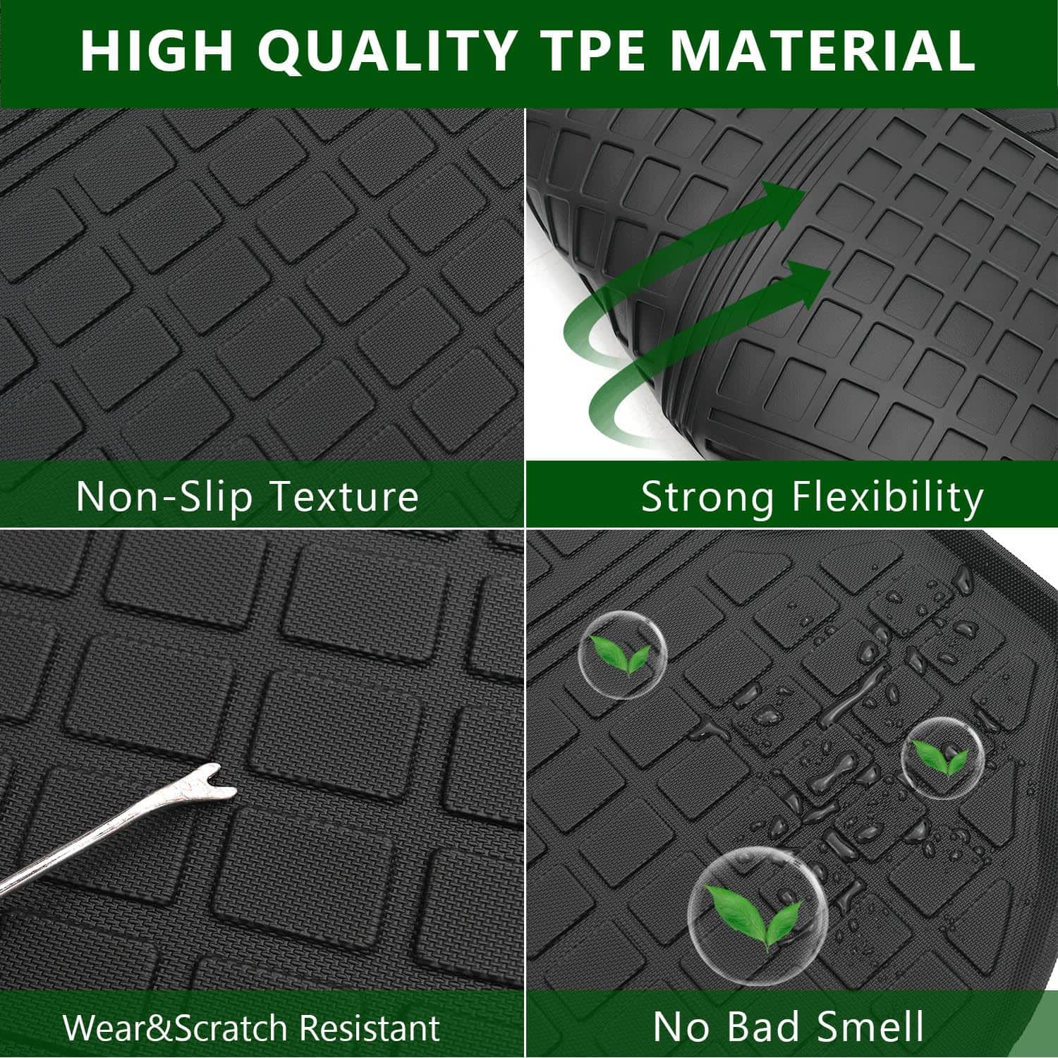 4. Instalación: Nuestros tapetes son fáciles de instalar. Los tapetes del respaldo tienen velcro en la parte posterior y se sujetan de forma segura a la parte posterior del asiento. Y debes colocar el tapete de maletero en el lugar correcto.