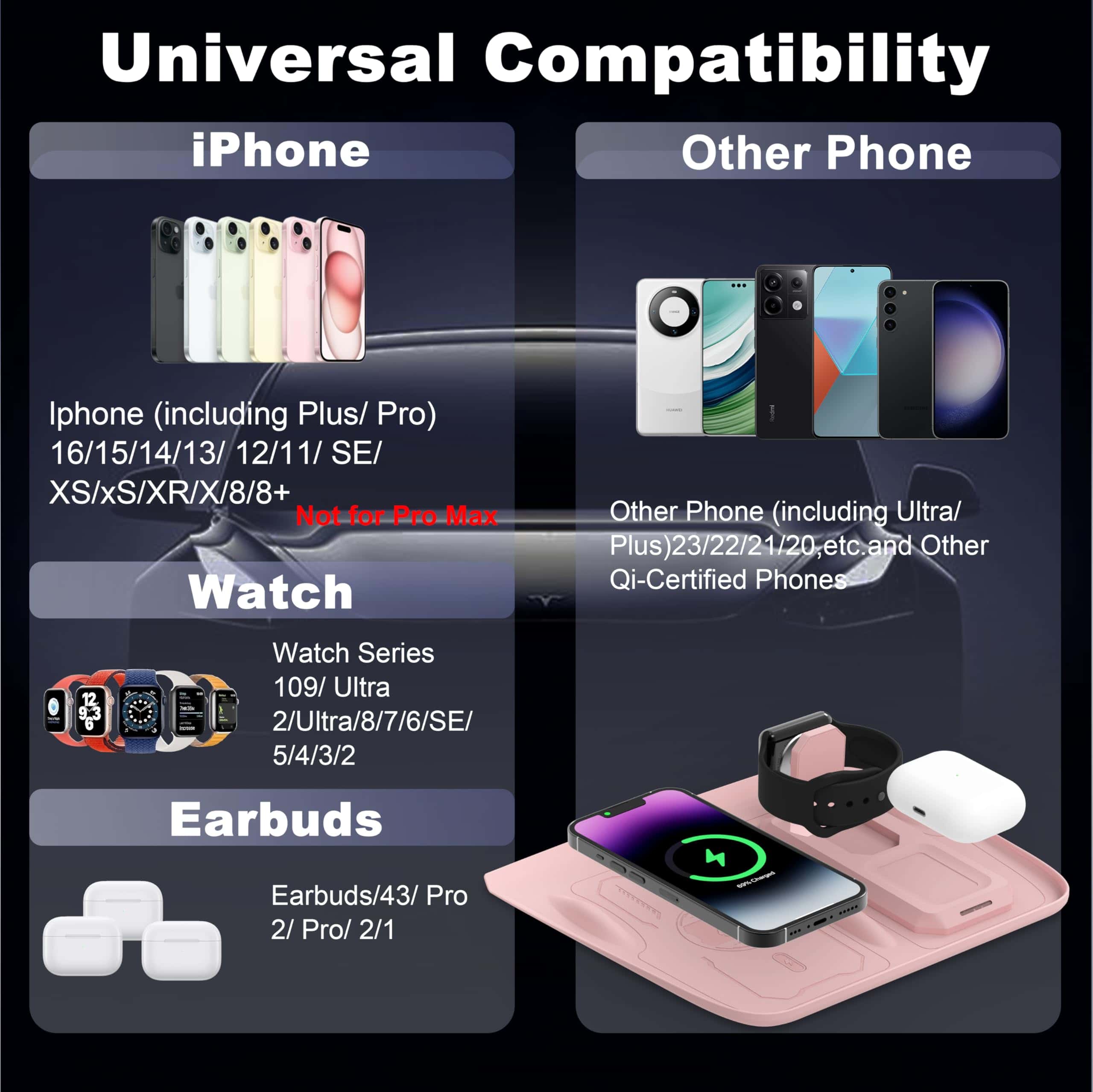 Tapete de Carga Inalámbrica 3 en 1 Fannasi -Rosa