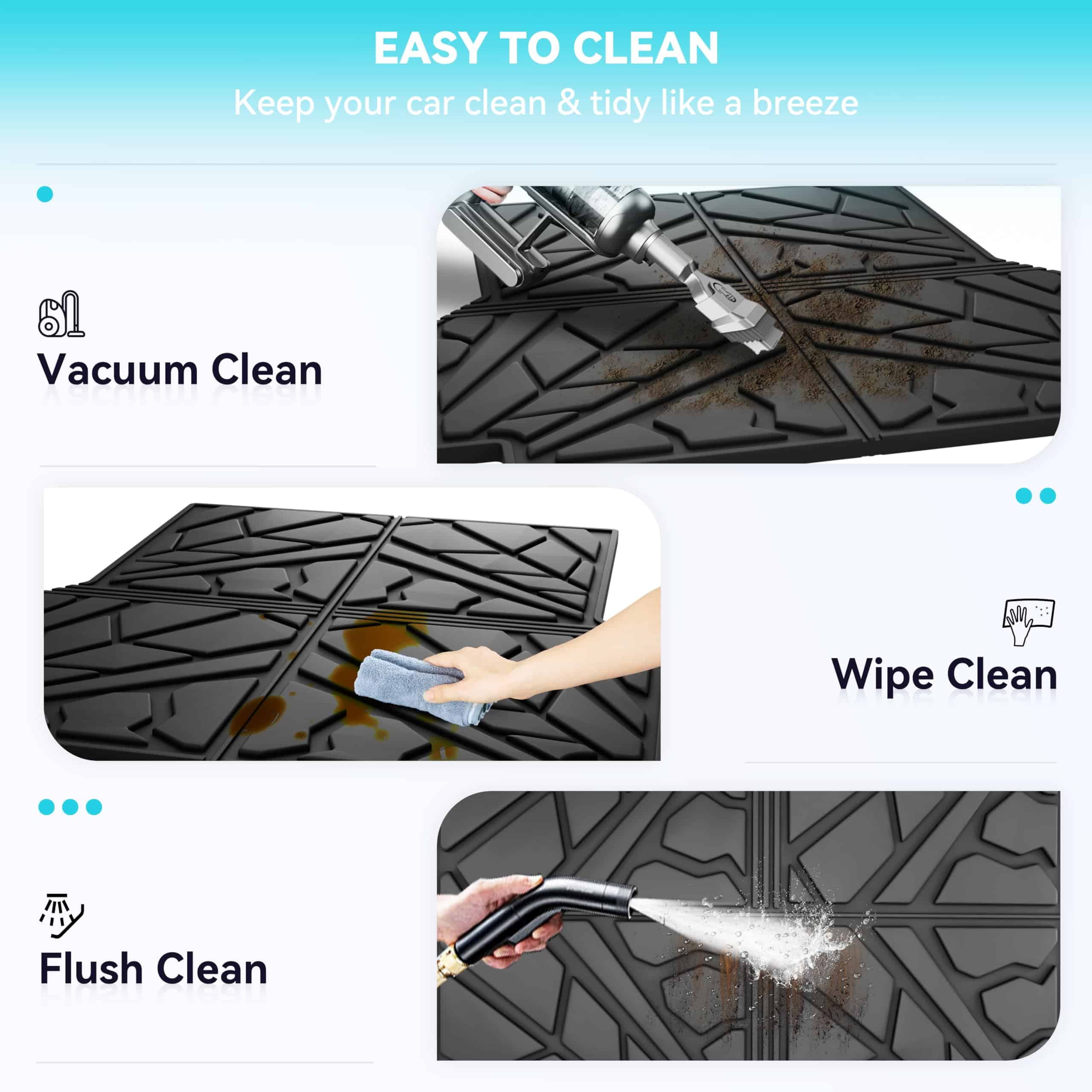 3. PROTECCIÓN TODO TERRENO – Años de experiencia en fábricas OEM nos han llevado a brindarle forros para el piso que pueden resistir la prueba de ácido de batería, aceite de motor y condiciones desde temperaturas bajo cero hasta calor extremo. No se produce ningún olor desagradable incluso a altas temperaturas.