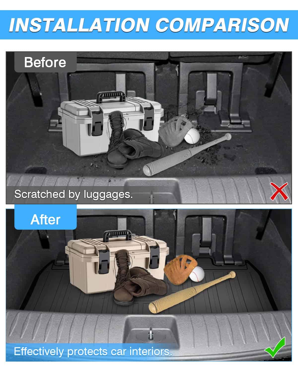 Este tapete de carga POWERTY está diseñado específicamente para adaptarse al Kia Carnival 2022-2025 (No híbrido) detrás de los asientos de la 3ra fila, asegurando una instalación perfecta que se adapta a la perfección al área de carga de su vehículo. Fabricado con TPE de primera calidad, este tapete de cajuela cuenta con un agarre antideslizante, flexibilidad, estanqueidad al agua y durabilidad excepcionales. Seguro para la salud, es inodoro y no tóxico, preservando el entorno en el interior de su automóvil. Las paredes elevadas y el borde biselado del forro crean una barrera que confina suciedad, derrames y escombros, manteniéndolos dentro de su perímetro y protegiendo el área de carga original de su vehículo. Las ranuras y crestas estratégicamente diseñadas dirigen los líquidos, evitando que se derramen y manteniendo el piso impecable. Equipado con un respaldo antideslizante especial, este tapete de cajuela se mantiene firmemente en su lugar, evitando desplazamientos durante el transporte y asegurando que su carga permanezca segura. La limpieza es rápida y sencilla: simplemente retire el tapete de su automóvil, enjuáguelo con una manguera o páselo con una aspiradora para eliminar la suciedad y los escombros, convirtiéndolo en una adición sin complicaciones a su vehículo.