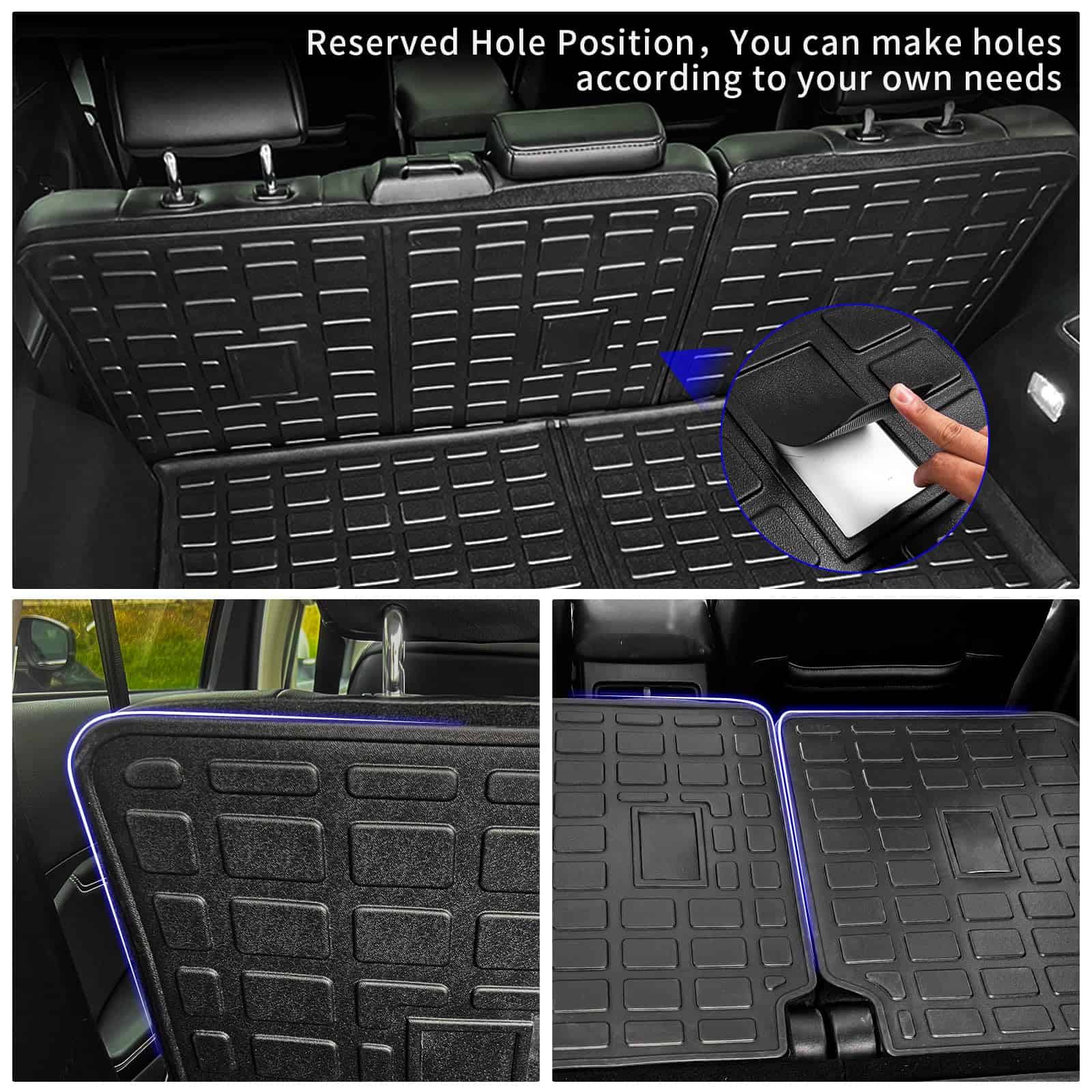 2. Función: Protege el interior del coche original de daños y se ve más hermoso, ya no te preocupes por el pelo de mascotas y la suciedad. Cuando los objetos chocan durante la conducción, nuestros tapetes para respaldo y el tapete para maletero pueden amortiguar el impacto y proteger el respaldo del asiento y el maletero.