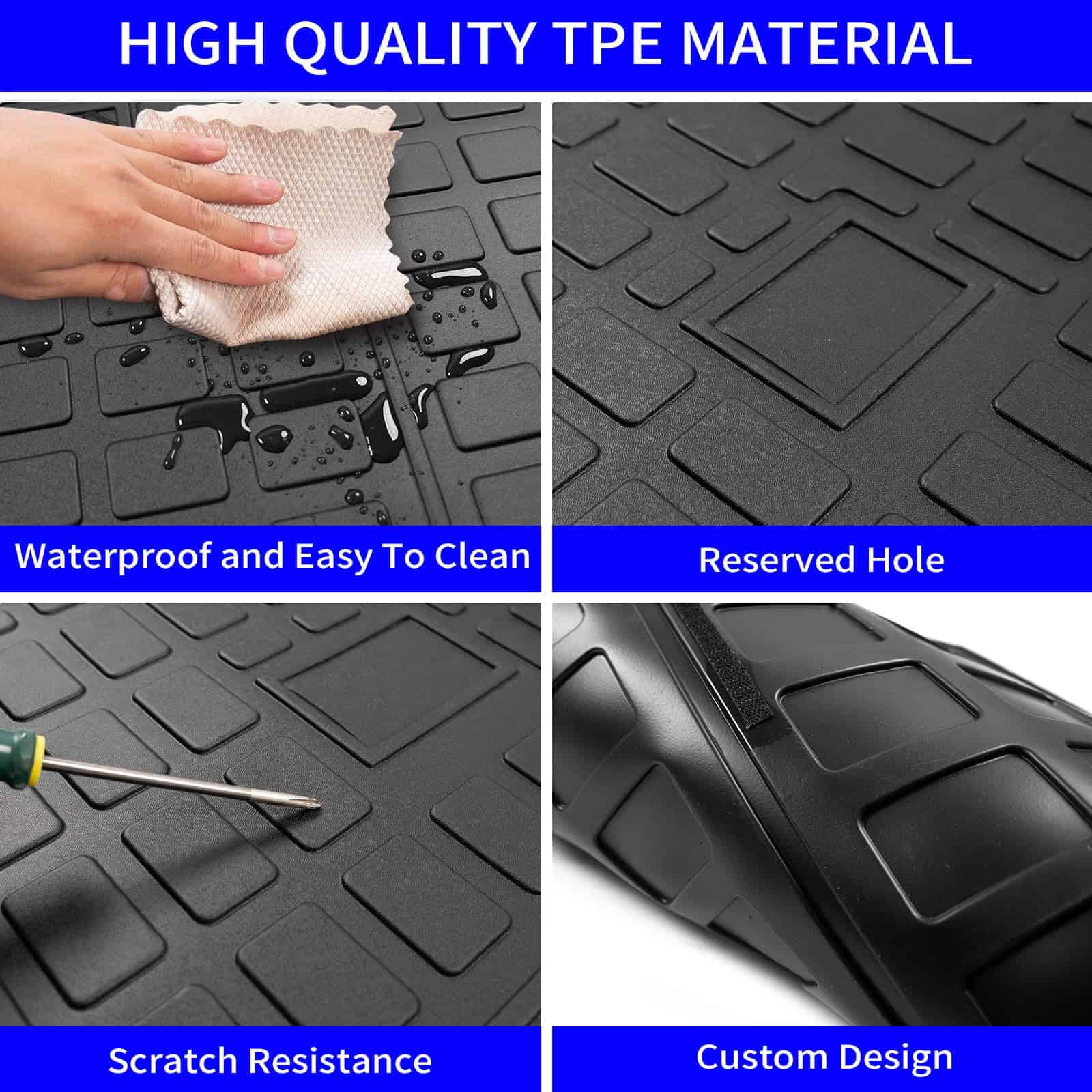 3. Material: Las fundas para asientos traseros y el tapete para maletero están hechos de material TPE de alta calidad, no tóxico, inodoro, flexible. Permita que usted y su familia se mantengan saludables dentro del coche.