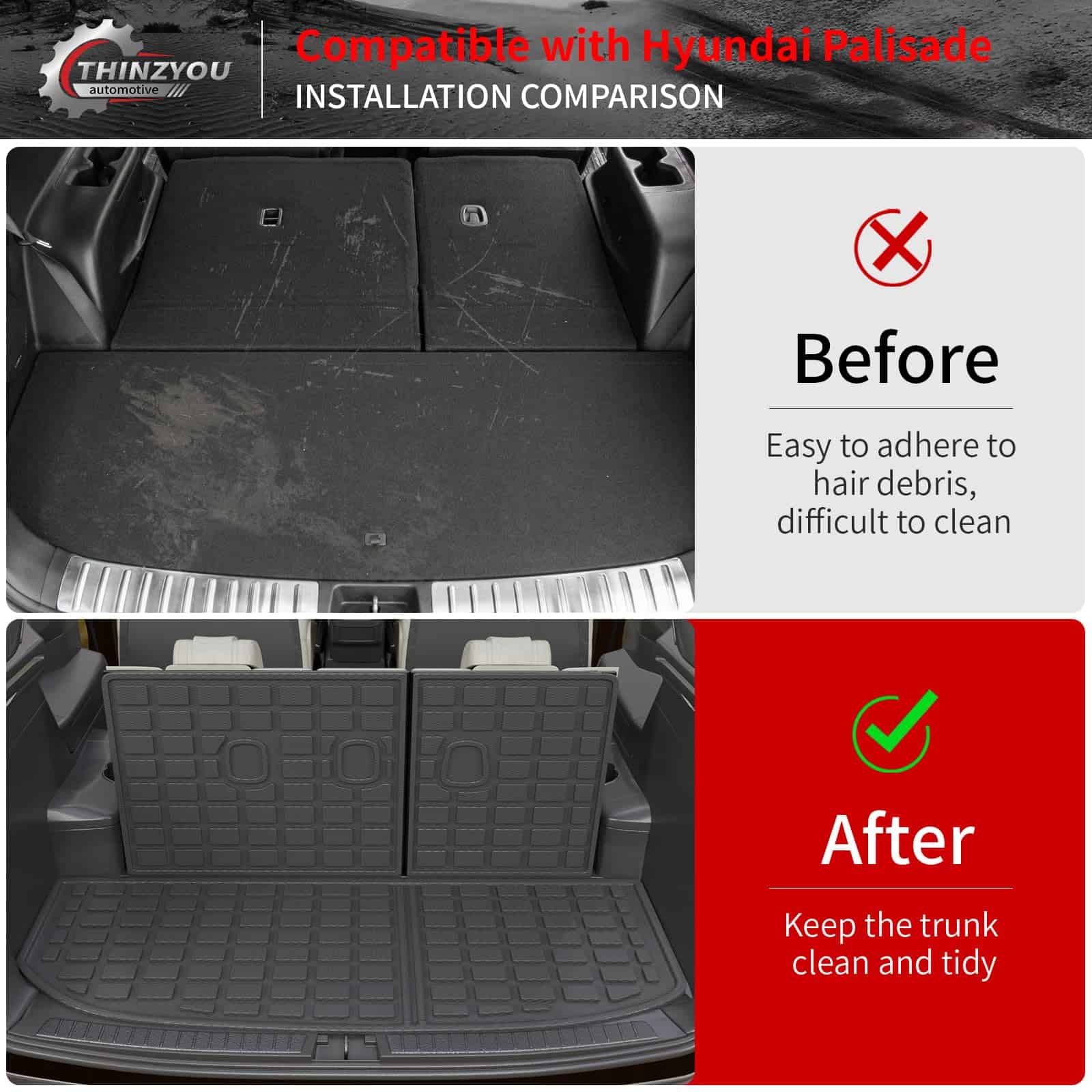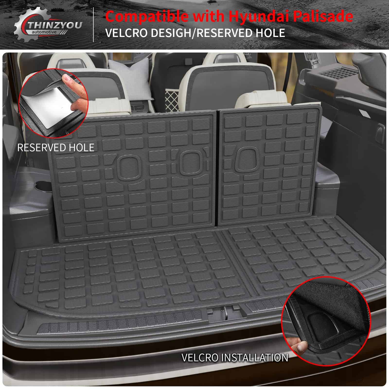 1. Ajuste: El revestimiento de carga con tapetes para respaldo es adecuado para Hyundai Palisade 2020 2021 2022 2023 2024 2025 en la 3ra fila.