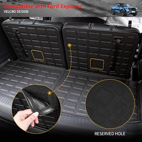 1. Compatibilidad: El tapete de protección para la 2.ª fila y el tapete de maletero con tapetes de respaldo se basan en el coche original y son compatibles con Ford Explorer 6 Asientos 2020-2025. Atención: El tapete solo es compatible con 6 asientos, NO con 7 asientos. Por favor, verifique cuidadosamente antes de comprar.