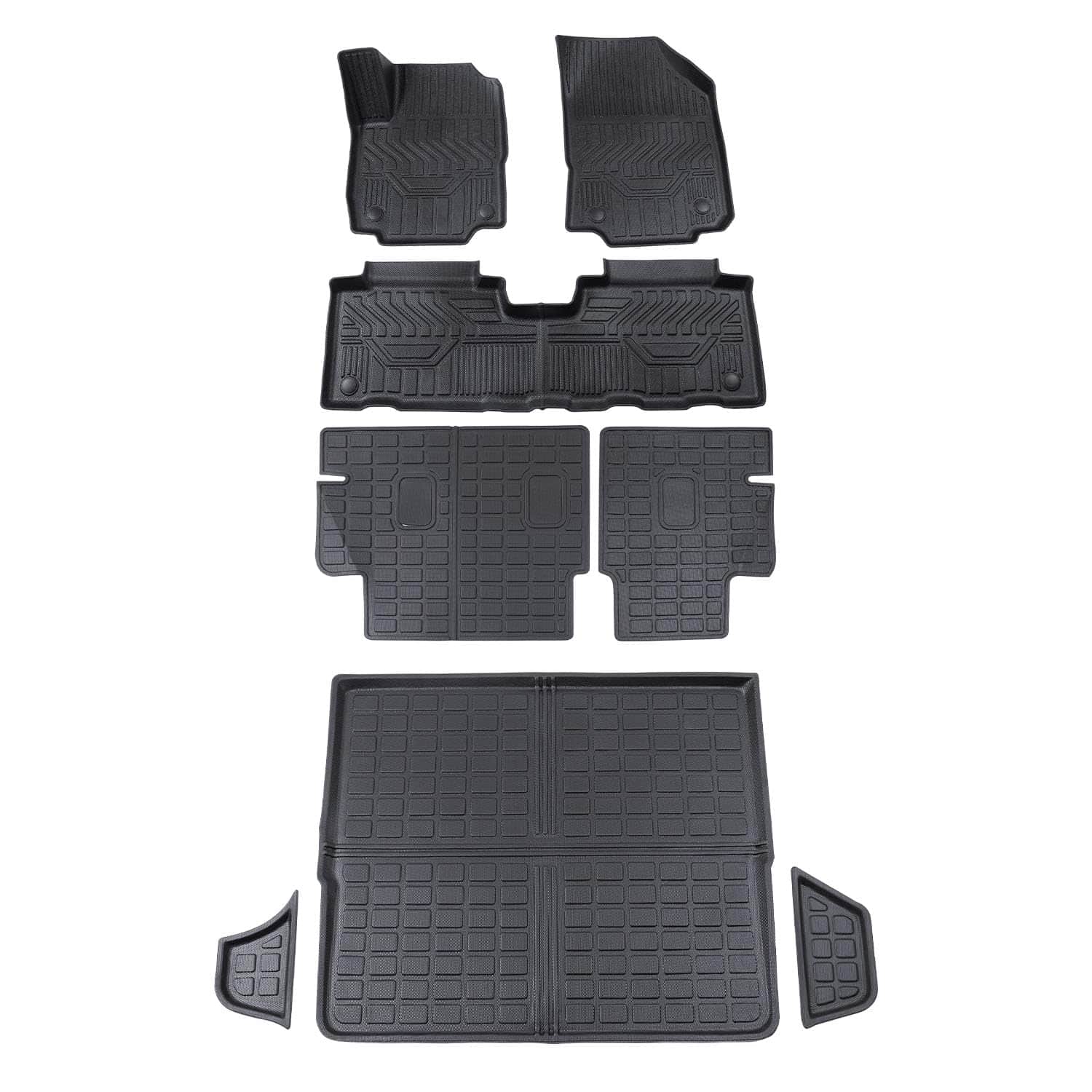 1. Compatibilidad: Los tapetes para respaldo trasero son compatibles con Chevy Equinox GMC Terrain 2018 2019 2020 2021 2022 2023 2024. Incluyen 8 piezas, que incluyen tapetes para respaldo trasero, tapetes para maletero trasero y tapetes para piso.