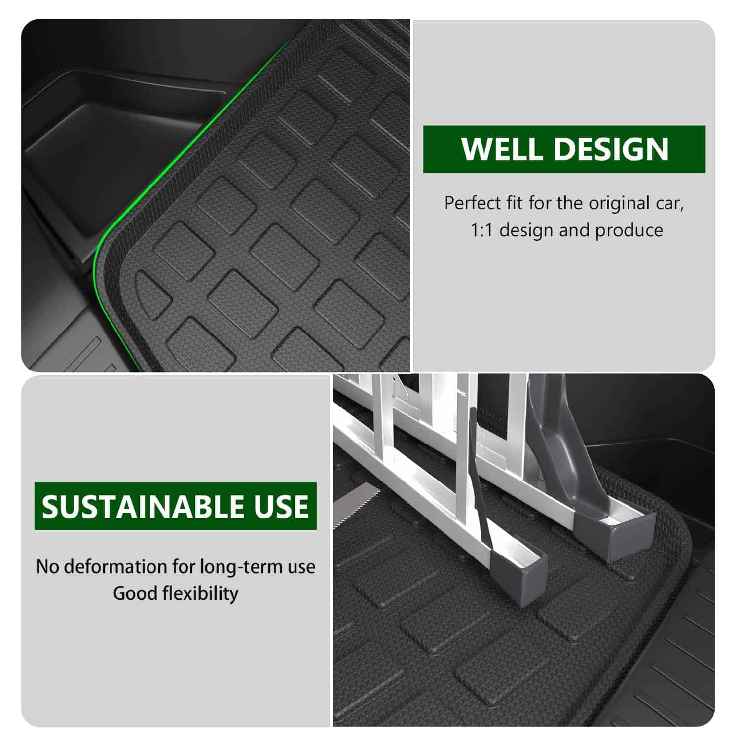 3. Función El revestimiento de carga antideslizante puede mantener eficazmente el equipaje en su lugar y evitar que su coche se ensucie, al mismo tiempo que protege su maletero de arañazos.