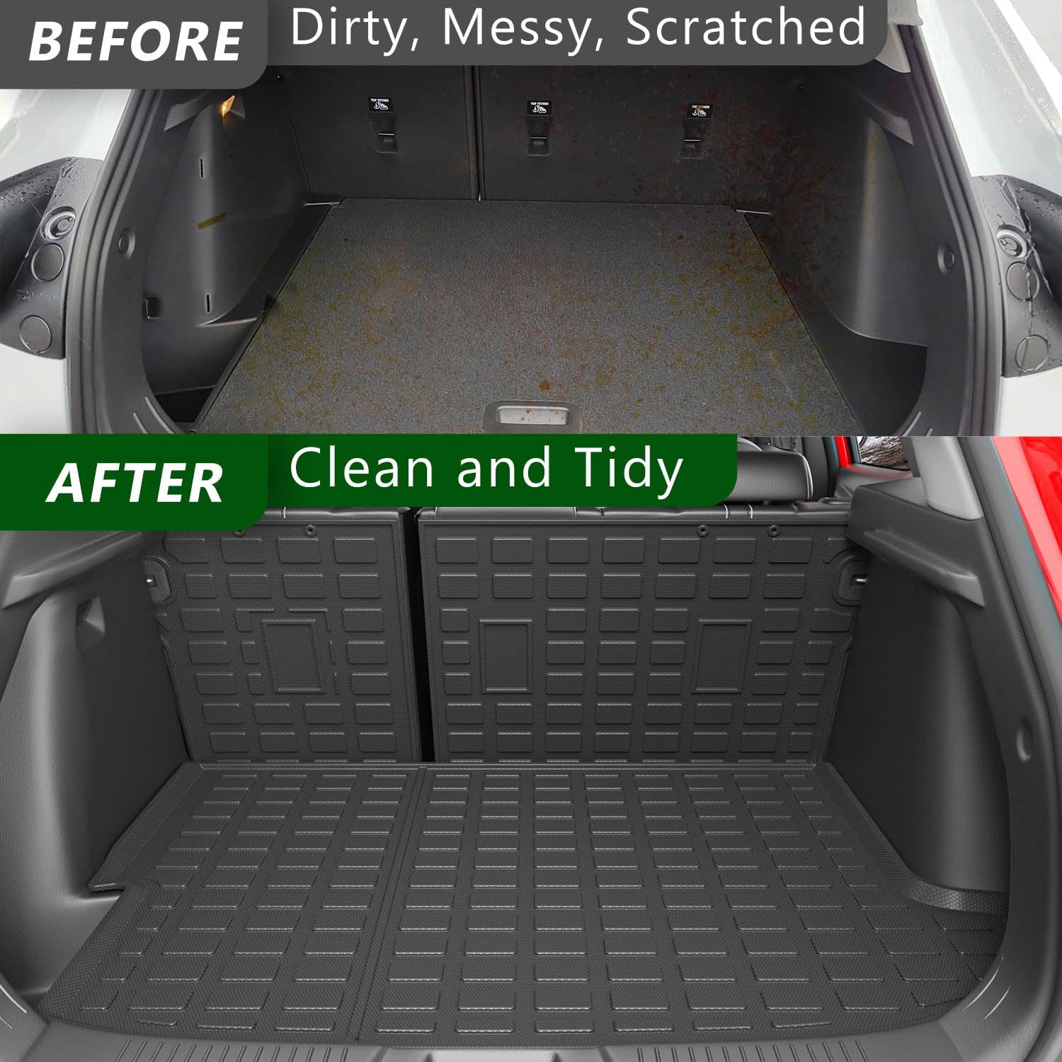 1. Ajuste personalizado: El tapete de carga con tapete para respaldo está diseñado según la escala del automóvil original, es compatible con Chevrolet Trax 2024 2025 y Buick Envista. Proporciona un ajuste personalizado que cubre todo el espacio del piso del maletero de manera efectiva.