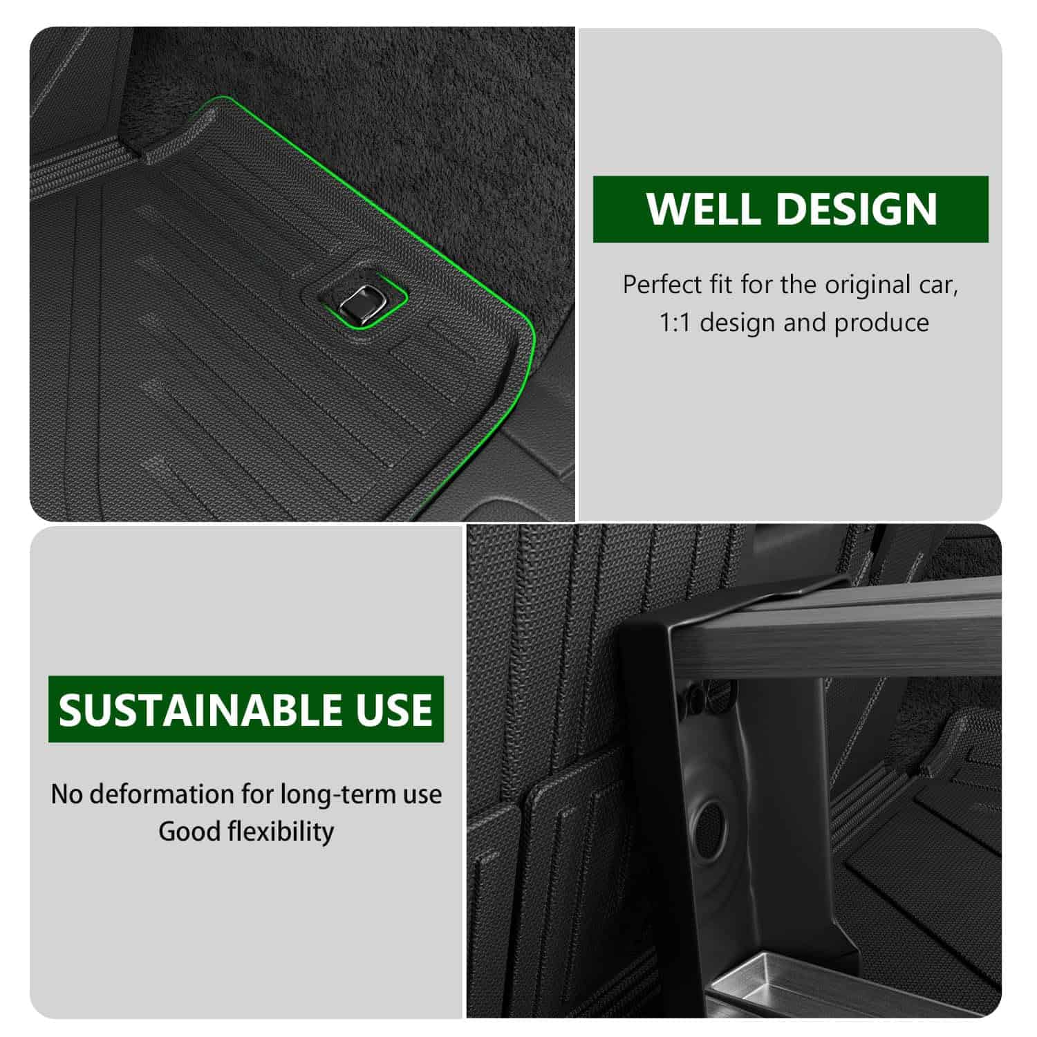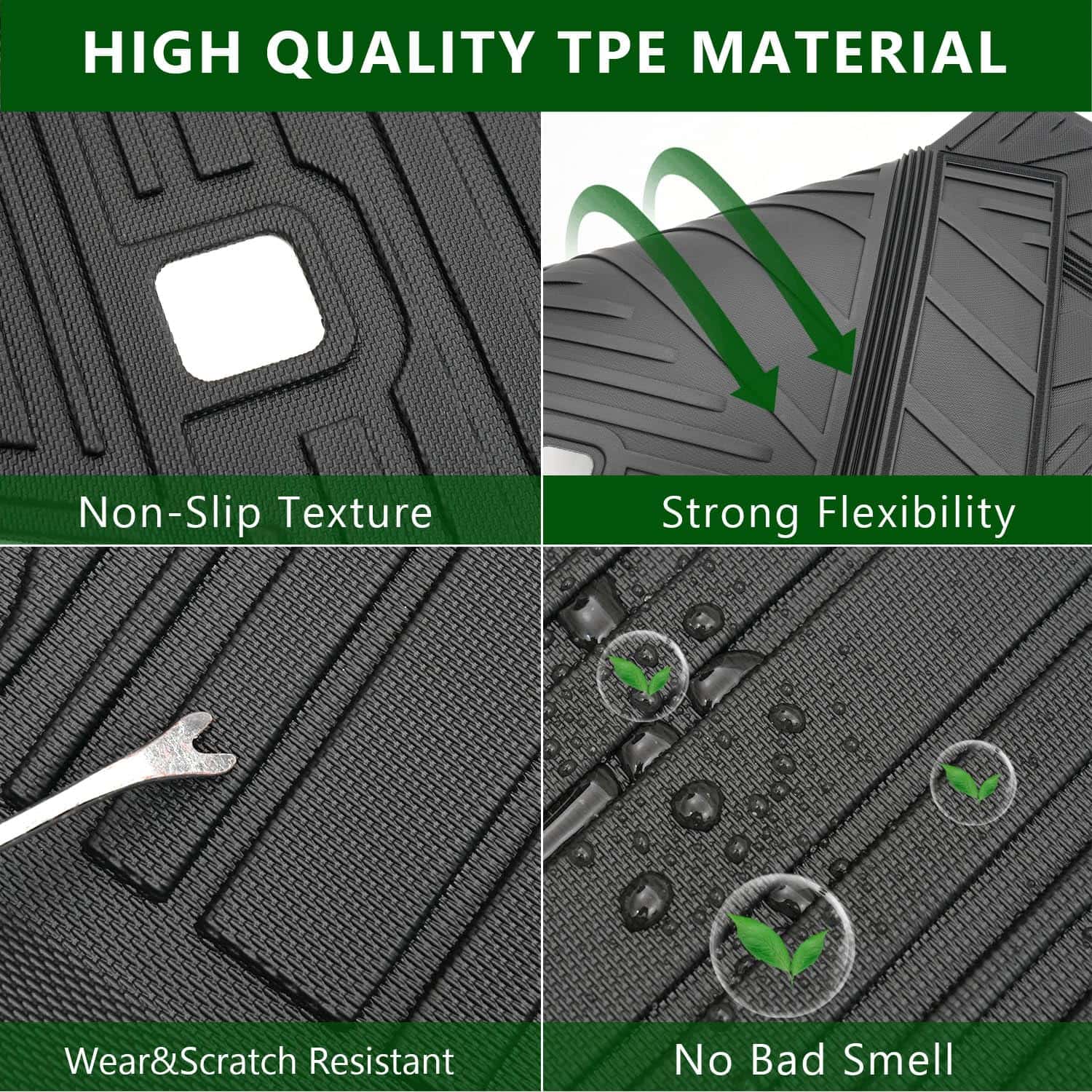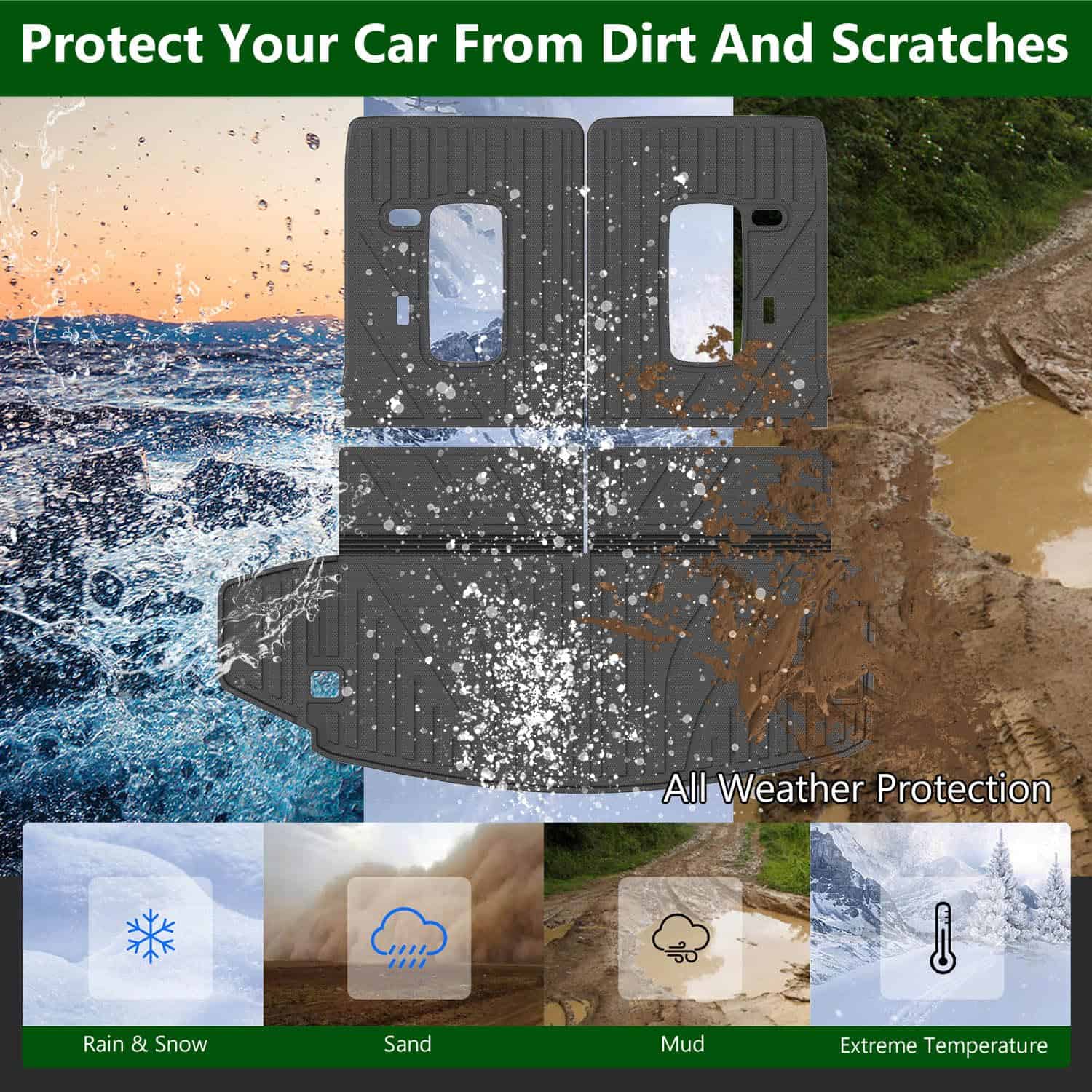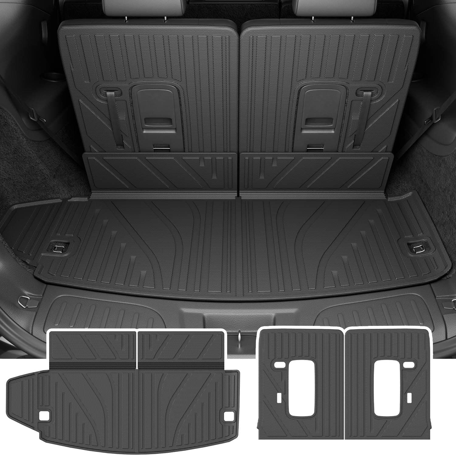 Material premium TPE: Nuestro protector de respaldo del asiento de la 3ra fila y el revestimiento del maletero están hechos de material TPE de calidad que tiene buena flexibilidad. El material TPE proporciona un tacto suave y mantiene la resistencia al desgaste y a las roturas. Puede usarlo con toda confianza porque no tiene mal olor y puede usarlo por mucho tiempo.