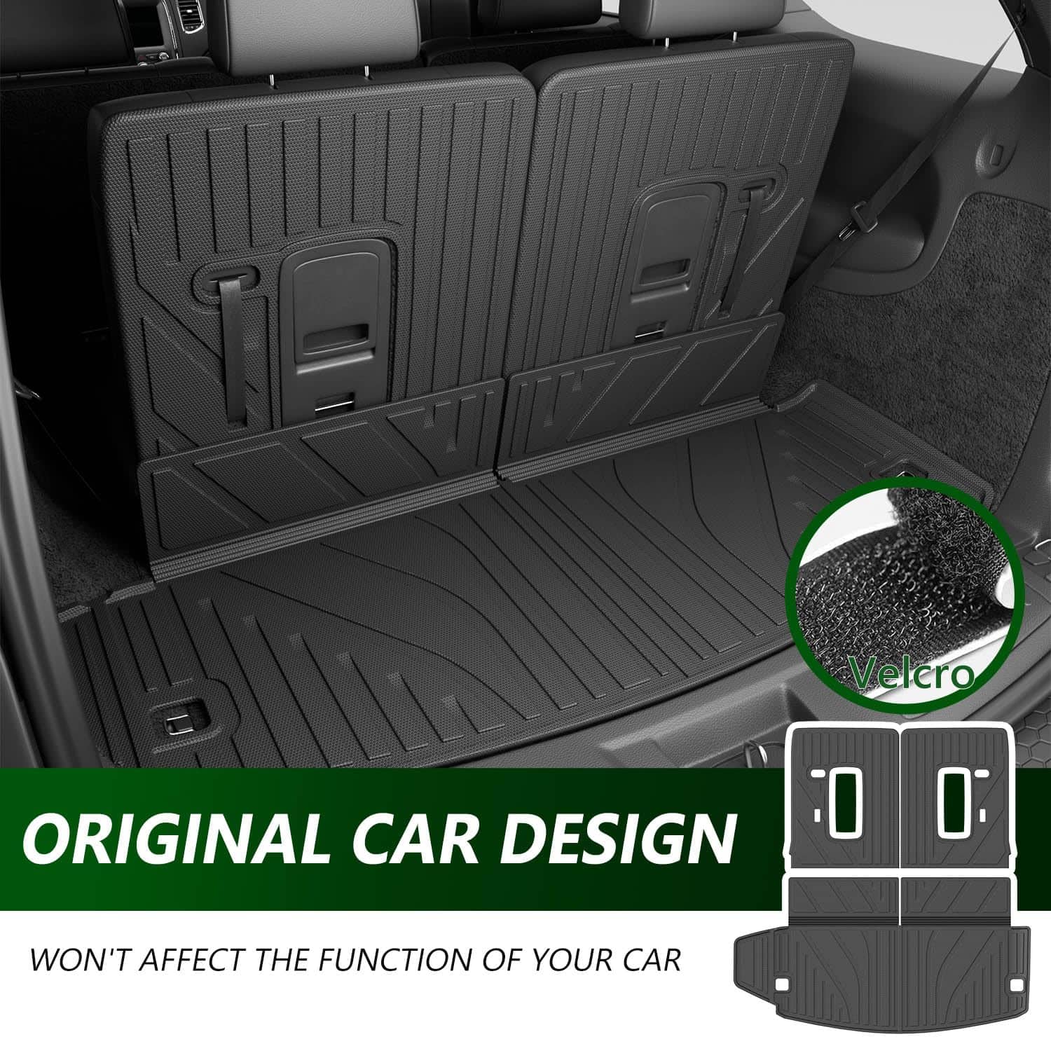 Fácil de instalar: Instalar estos revestimientos de maletero es fácil y no requiere herramientas adicionales. Solo necesita colocar el tapete en el lugar correcto. Los tapetes compatibles con Dodge Durango de 6 y 7 asientos del 2016 al 2024 vienen con velcro para sujetar.
