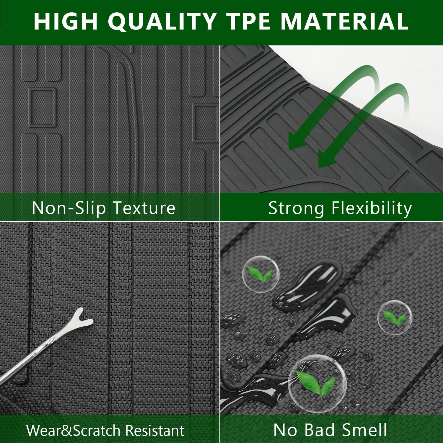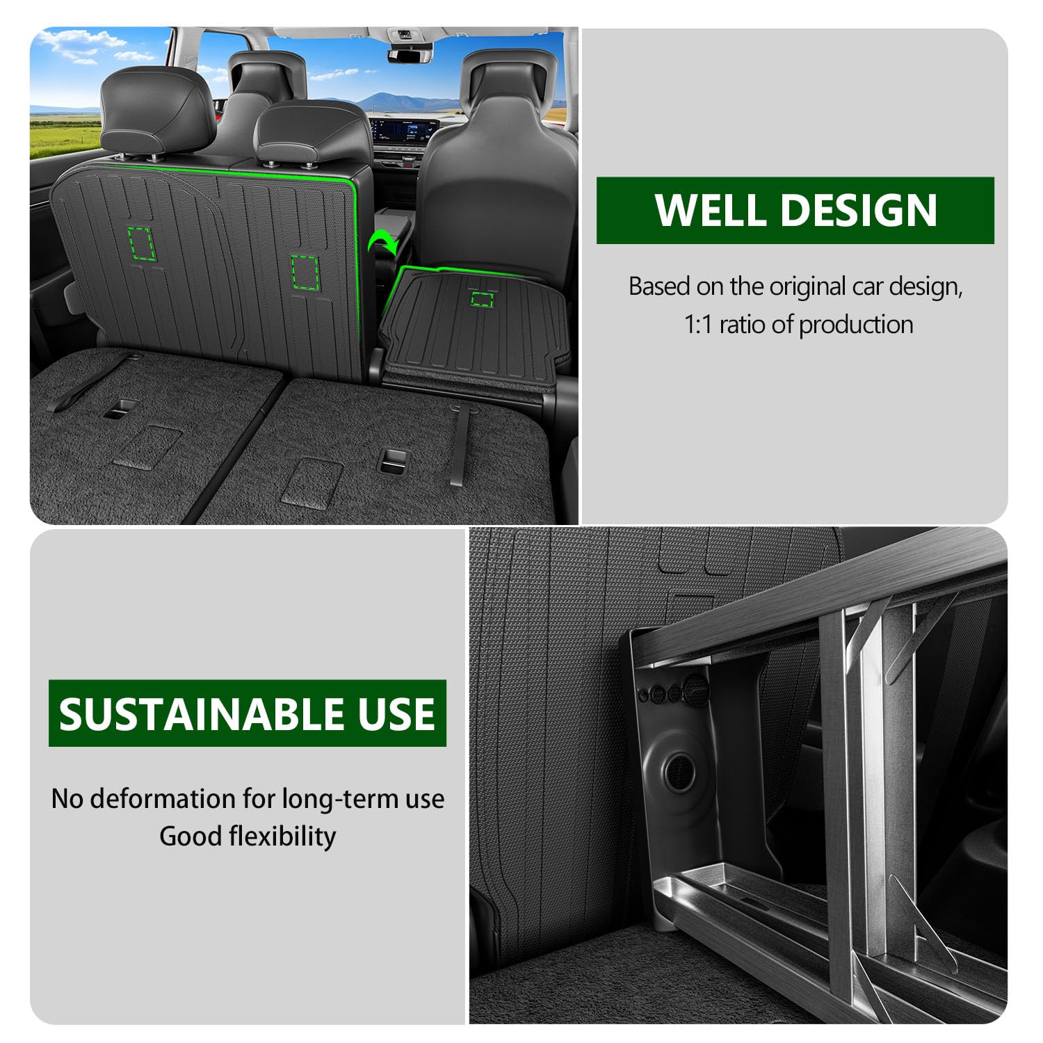 2. Material Premium TPE: Nuestro protector de asiento trasero compatible con el tapete de carga Kia EV9 está hecho de material TPE de calidad que tiene buena flexibilidad. El material TPE proporciona una sensación de tacto suave y mantiene la resistencia al desgaste y a las roturas. Puede usarlo con confianza porque no tiene mal olor y puede usarlo durante mucho tiempo.