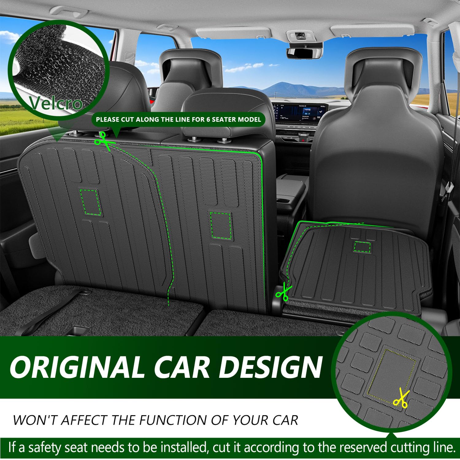 1. Ajuste Personalizado: El tapete de respaldo de la 2ª fila con grano de arroz está diseñado según el modelo de automóvil original. Es compatible con el tapete de carga Kia EV9 2024-2025. ATENCIÓN: si su automóvil es de 6 plazas, deberá cortar el tapete según el alambre de corte reservado en el tapete. Por favor, verifique el modelo del vehículo a fondo antes de realizar una compra.