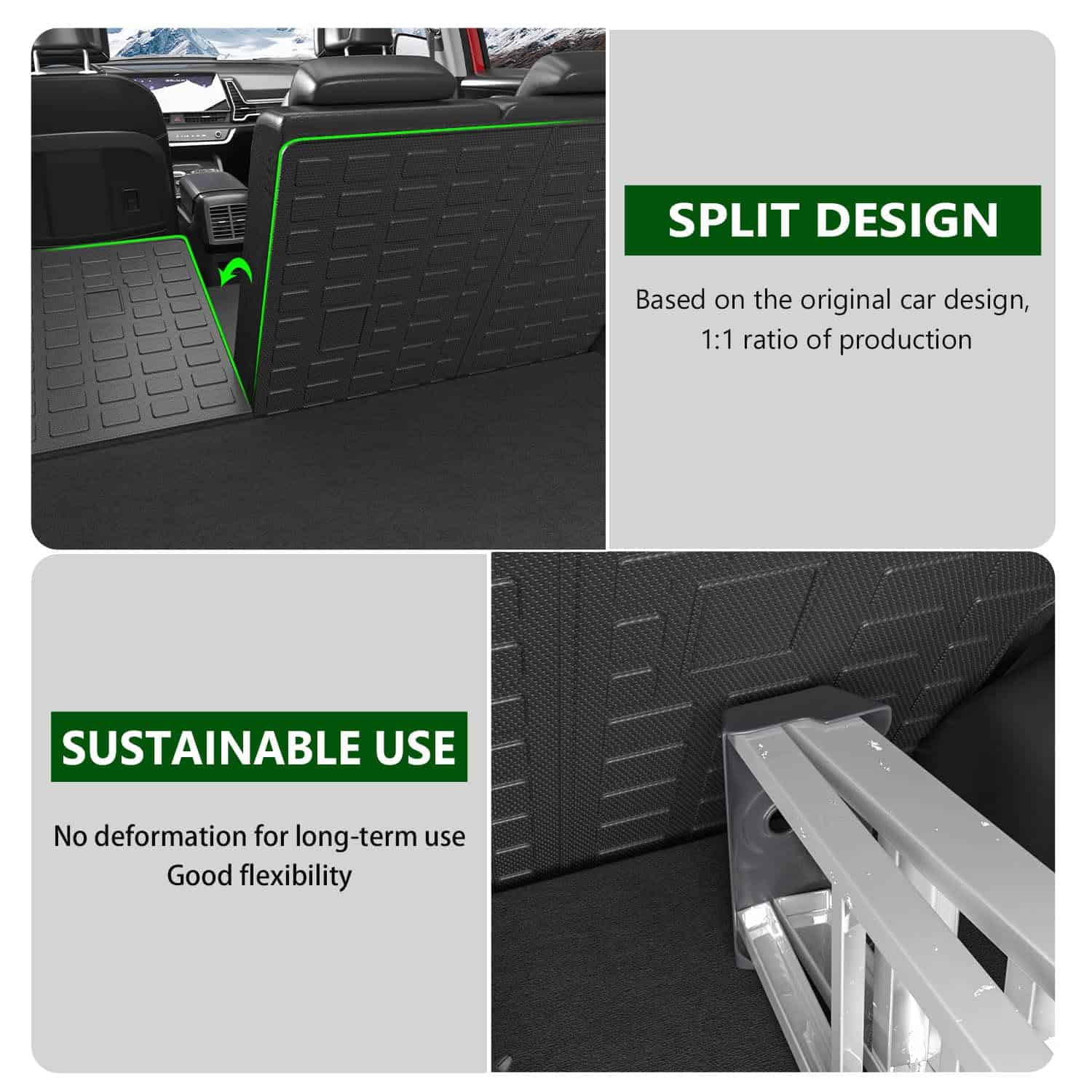 2. Material de alta calidad: El protector de respaldo para Kia Sportage está hecho de material de TPE de alta calidad. No tiene mal olor. Tiene buena flexibilidad.